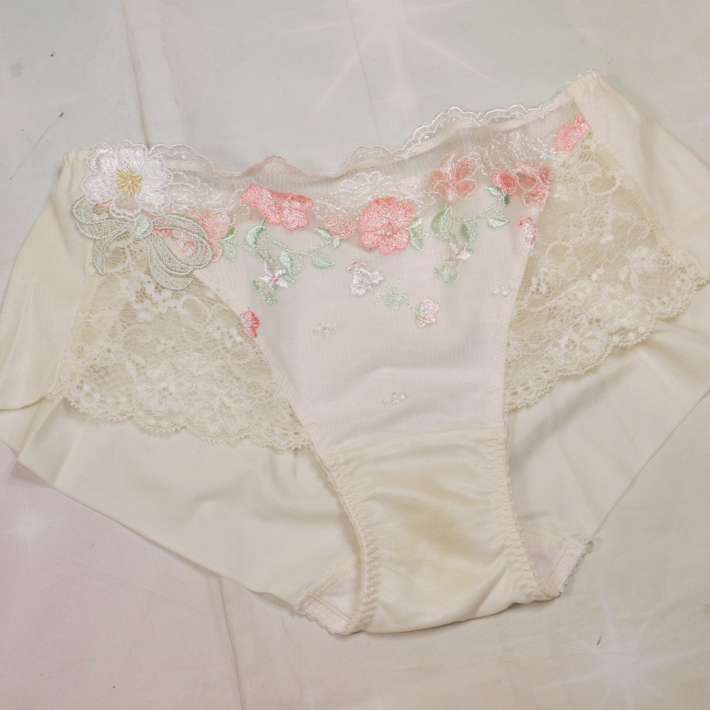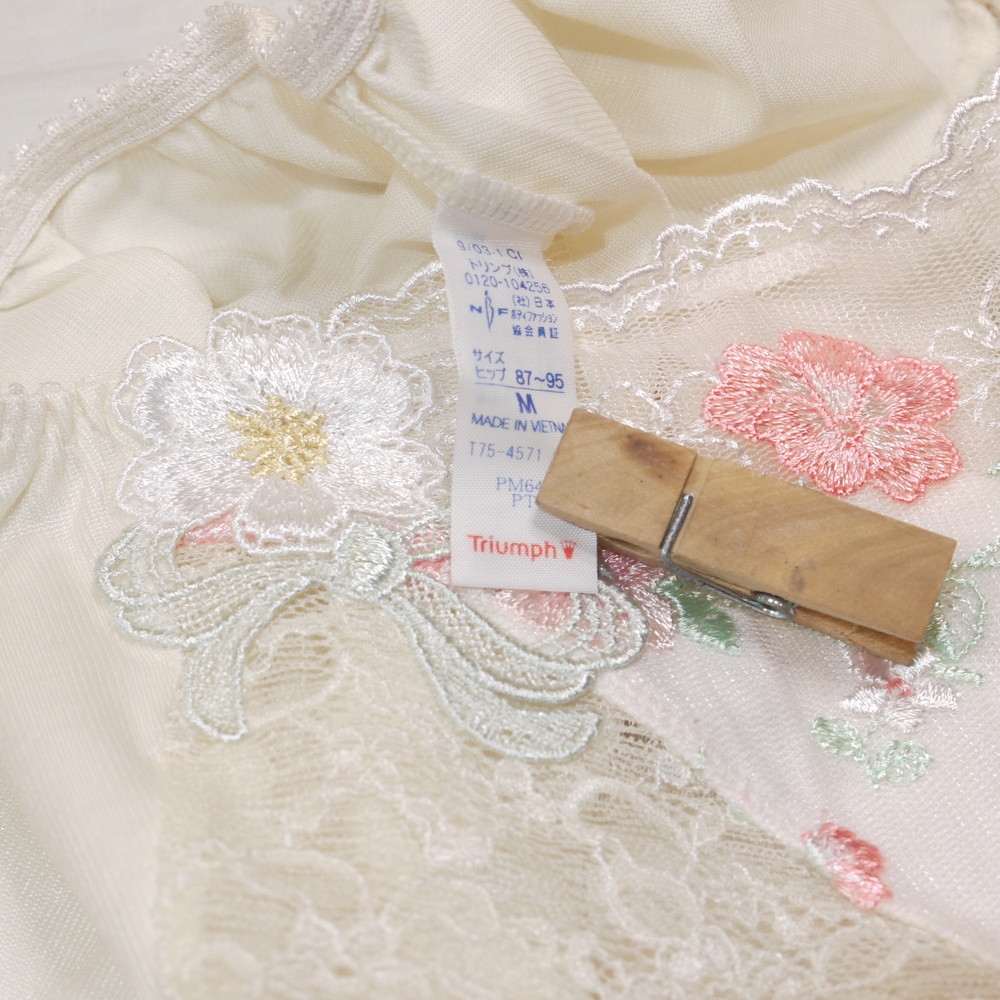 【Cランク/43-】トリンプ:Mサイズ ★ ポアモア!純粋感のオフホワ×和を感じる花刺繍 フィット系ショーツ