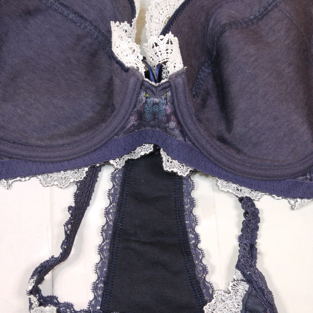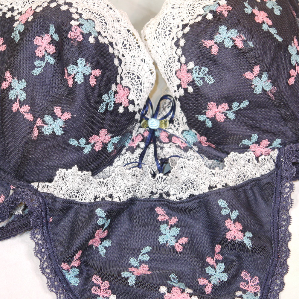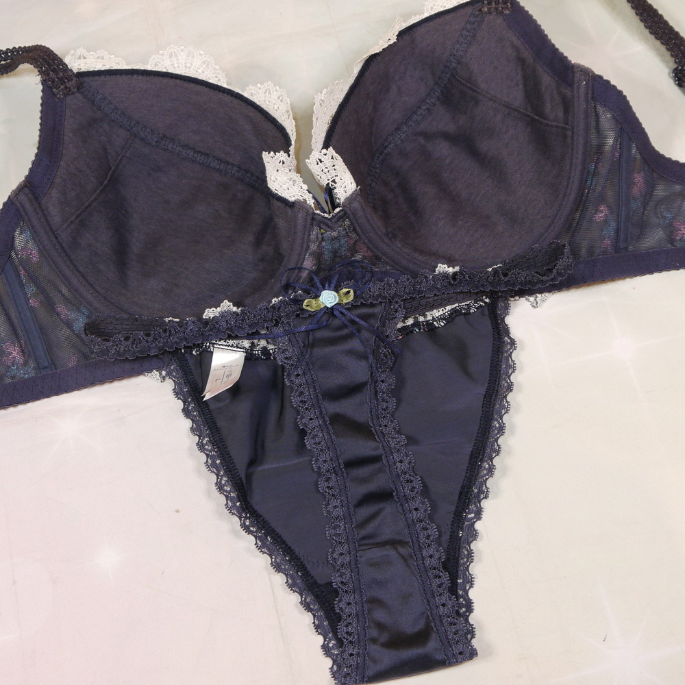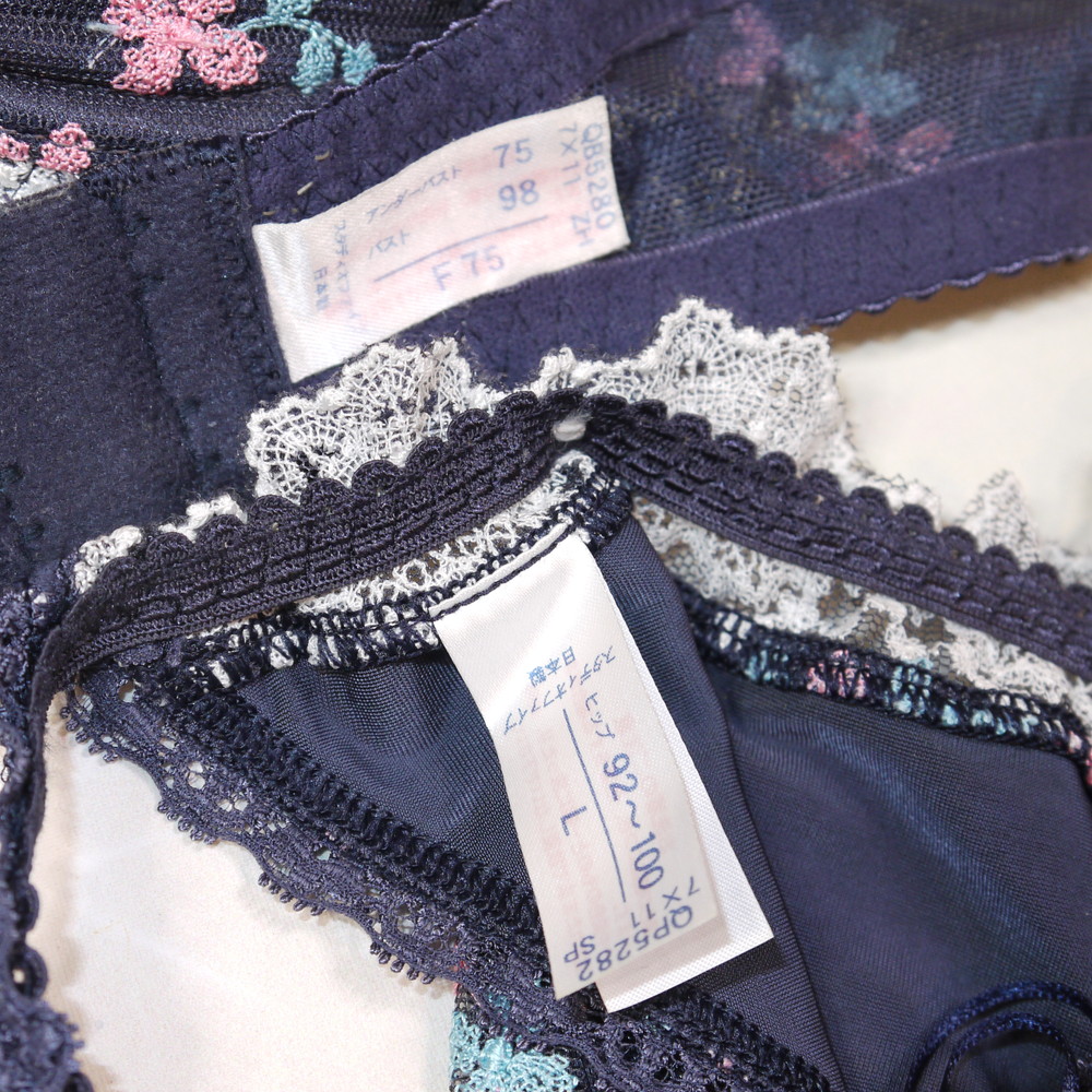 【Bランク/新古美品】スタディオファイブ:F75*98 Lサイズ ★ 大人可愛いネイビー×小花 爆乳&アンダー75広々 T PBセット