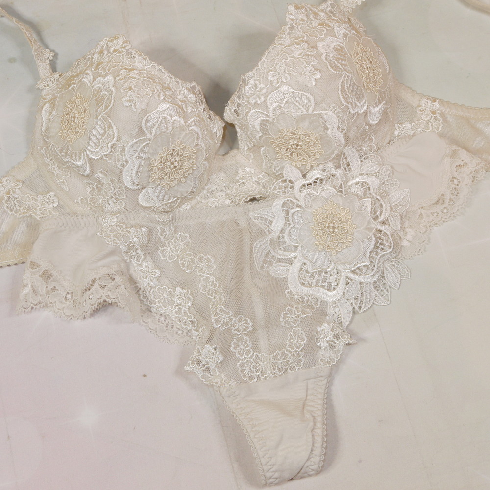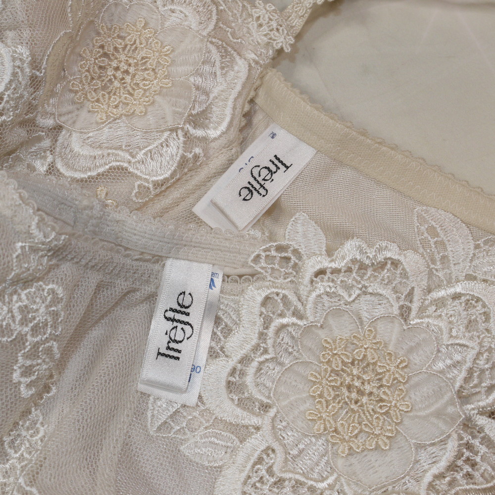 【Bランク/新古美品】トレフル 53G:B75*88 Mサイズ ★ 鏡の回廊!アイボリー×大輪アップリケ T PBセット