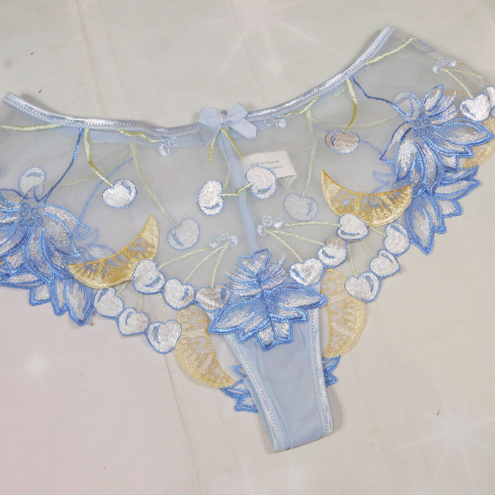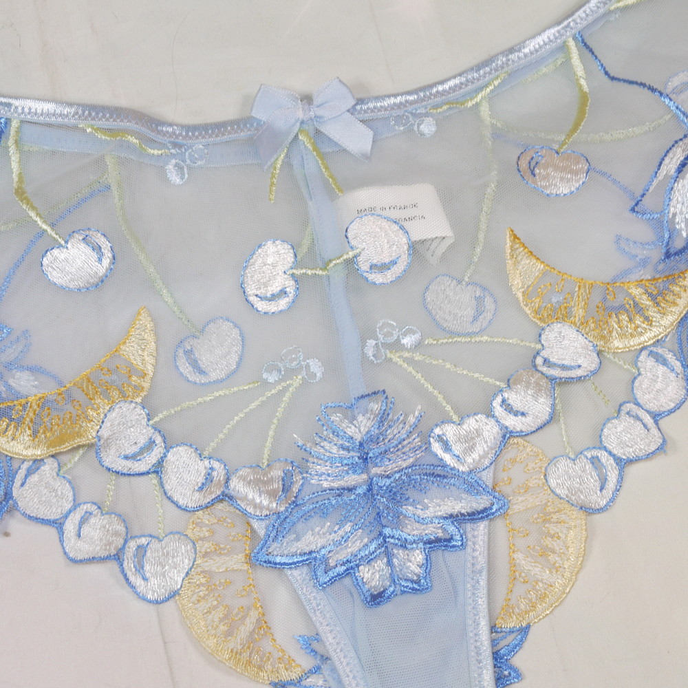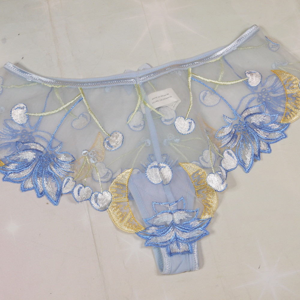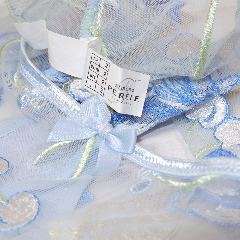 【BCランク/K43-】Simone PERELE:3:L-LLサイズ程 ★ 高級な厚手フルーツ刺繍 肉感メガ ブルー 透けSEXY ハーフTショーツ