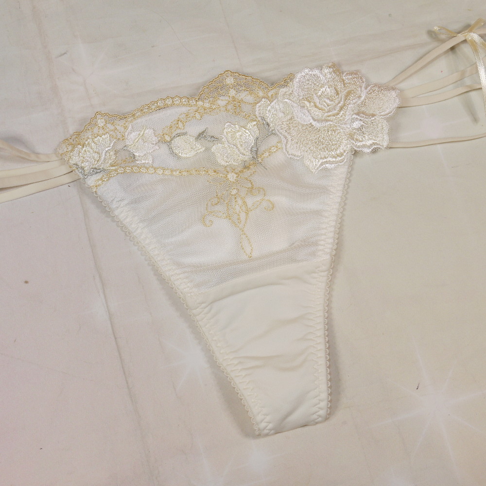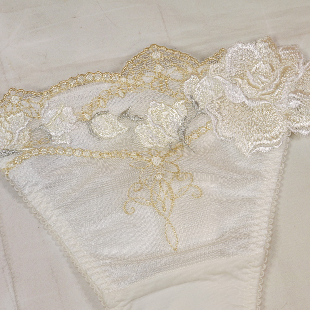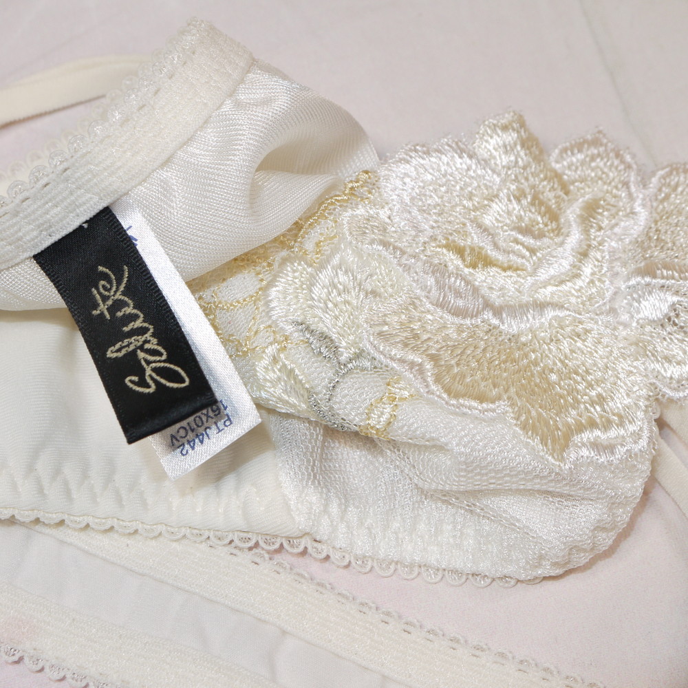 【Bランク/新古美品】サルート 42G:Lサイズ ★ シンデレラ!純粋感溢れるオフホワ×金リーフ 薔薇 Tショーツ