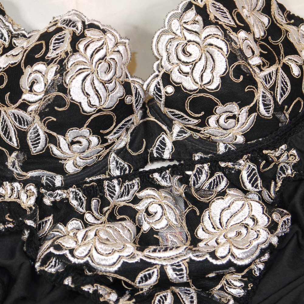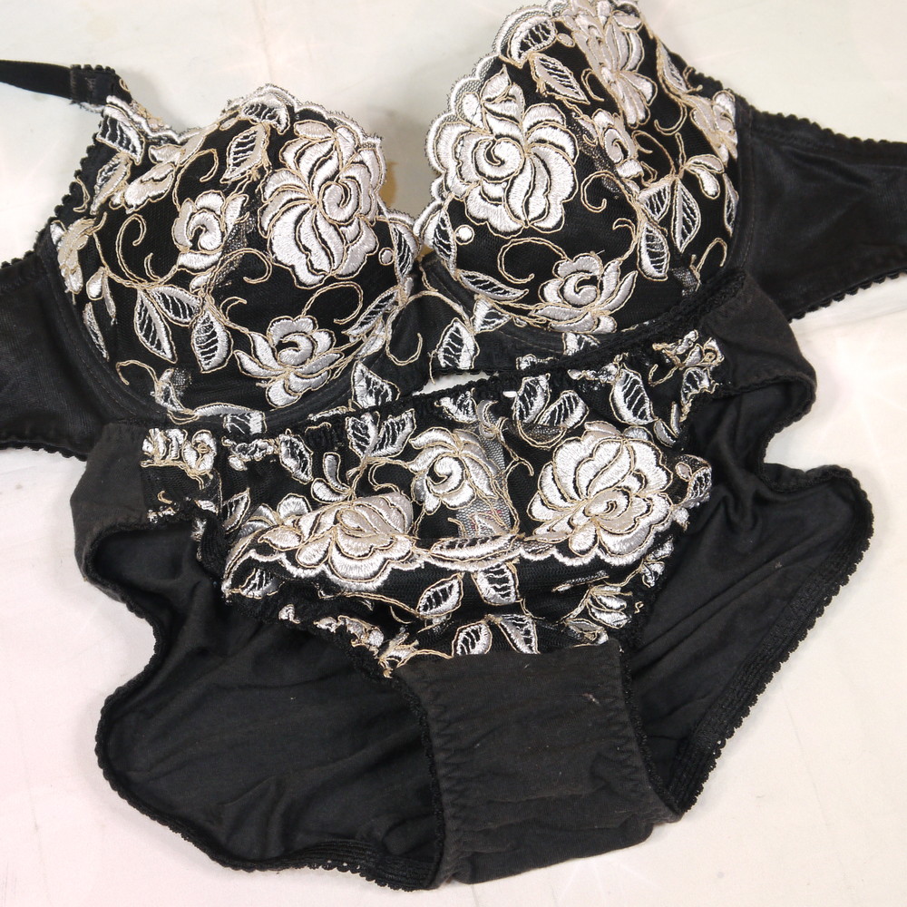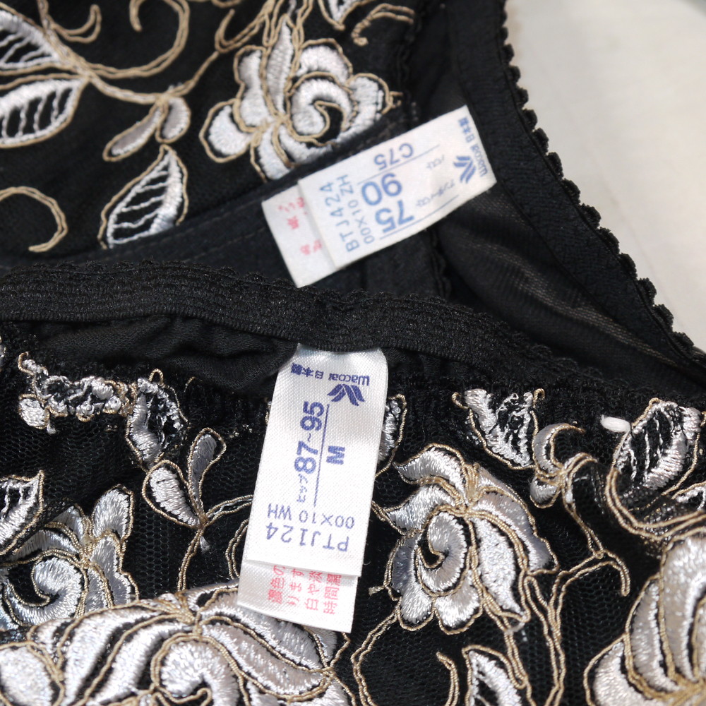 【BCランク】ワコール:C75*90 Mサイズ ★ 旧サルート品番!高級感溢れる黒×大輪花刺繍 PBセット