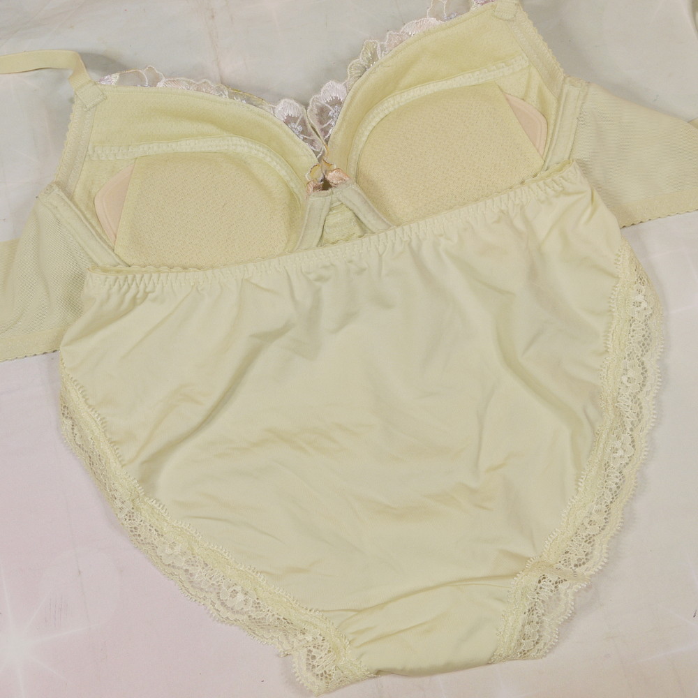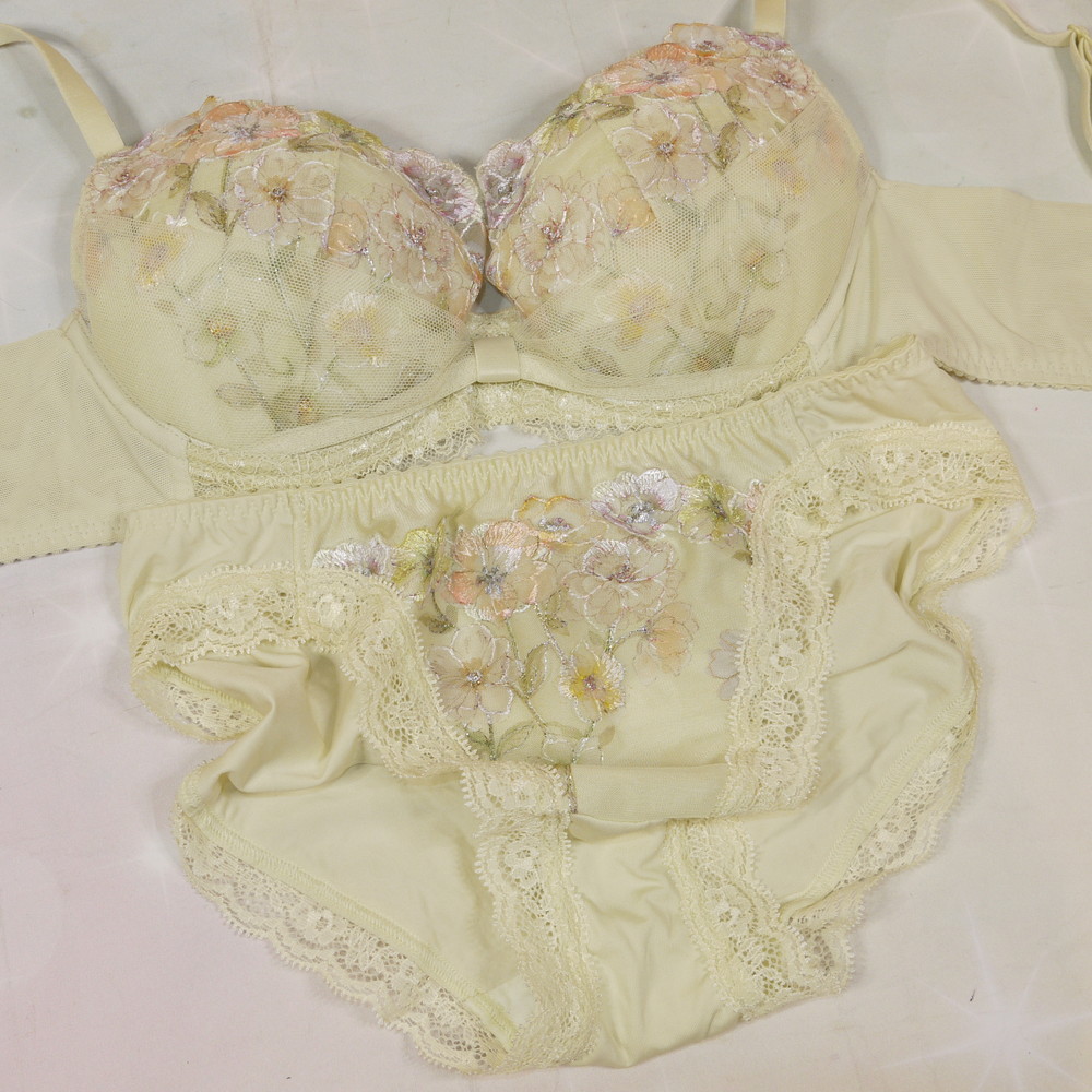 【BCランク/K43-?】ワコール:C70*85 Mサイズ ★ 春香るライトグリーン りぼんブラ お花レース刺繍 清楚な奥様系 PBセット