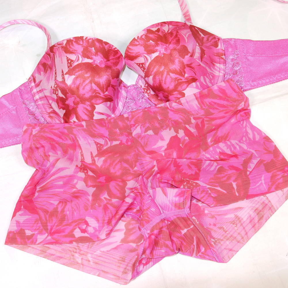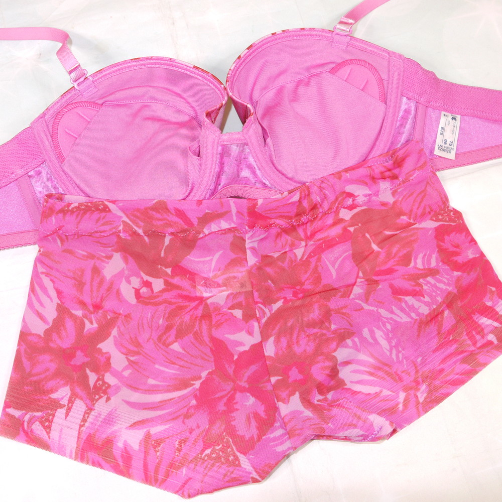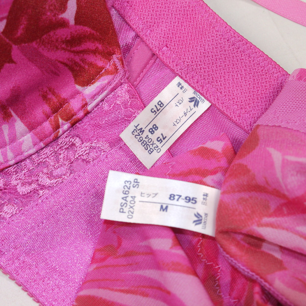 【ABランク/未使用?】ワコール:B75*88 Mサイズ ★ 艶やかピンク×ボタニカル OL・お姉様・若妻系 PBセット