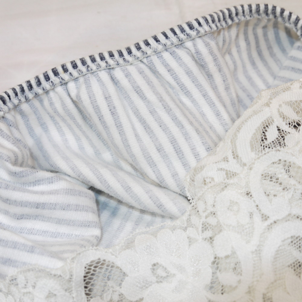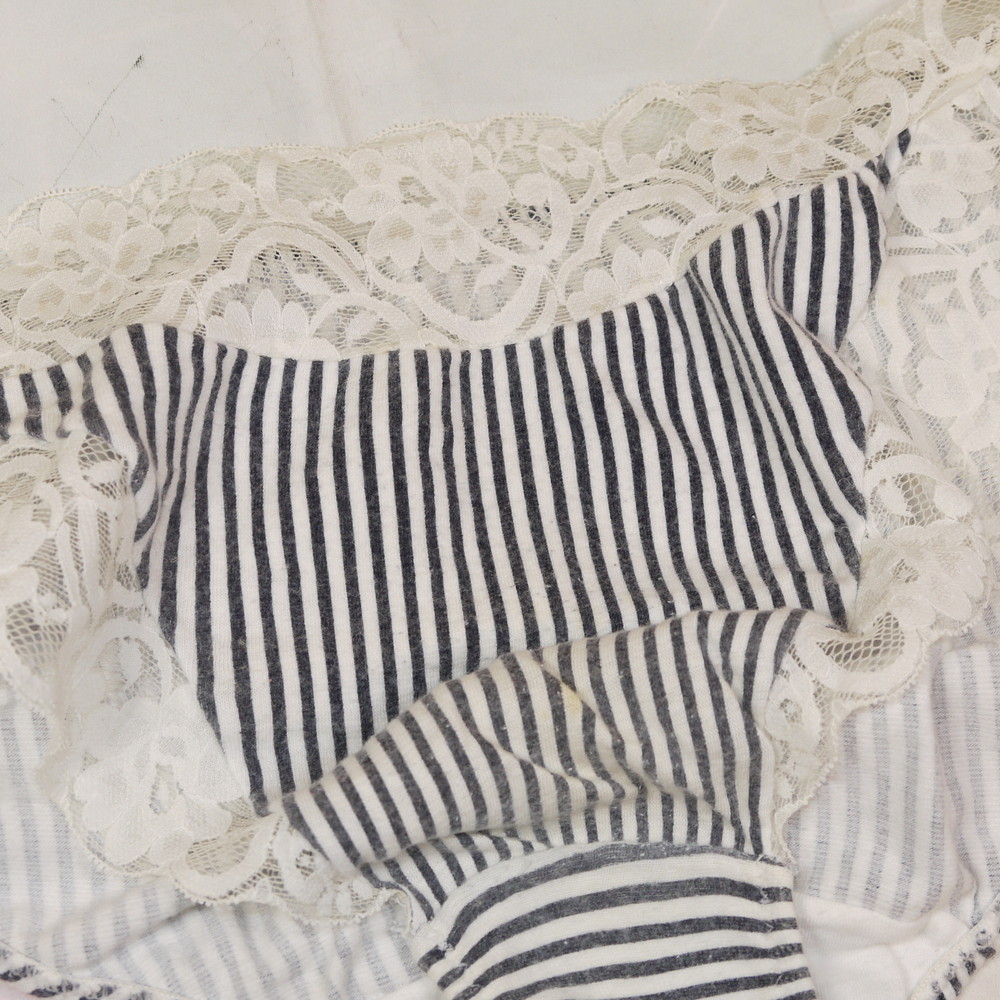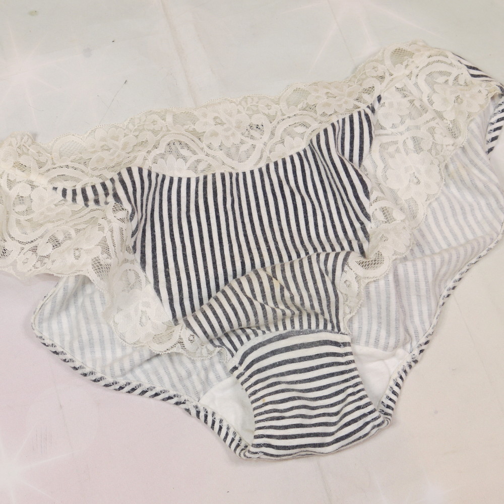 【Cランク/K43】:L-LLサイズ程 ★ 平成を感じるストライプ系 肉感メガ 縁取りレース お姉ギャル系パンティ