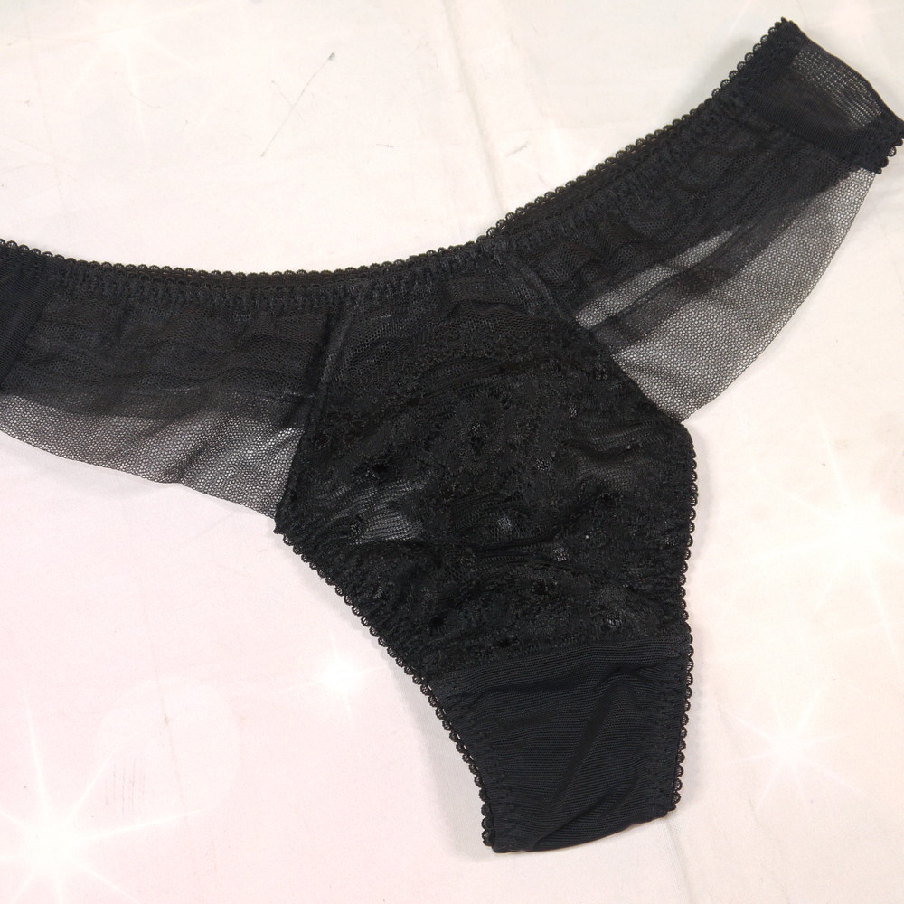 【Bランク/新古美品】:MLサイズ程 ★ 妖艶香る大人黒ランジェ 食い込みMAX Tショーツ