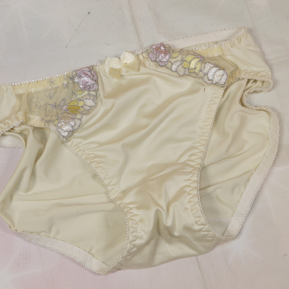【BCランク/K43】エレーヌ:Mサイズ ★ やんわり甘生地 ライトイエロー 薔薇刺繍 ショーツ