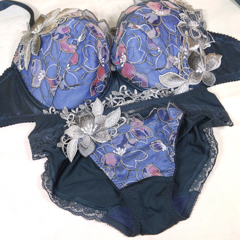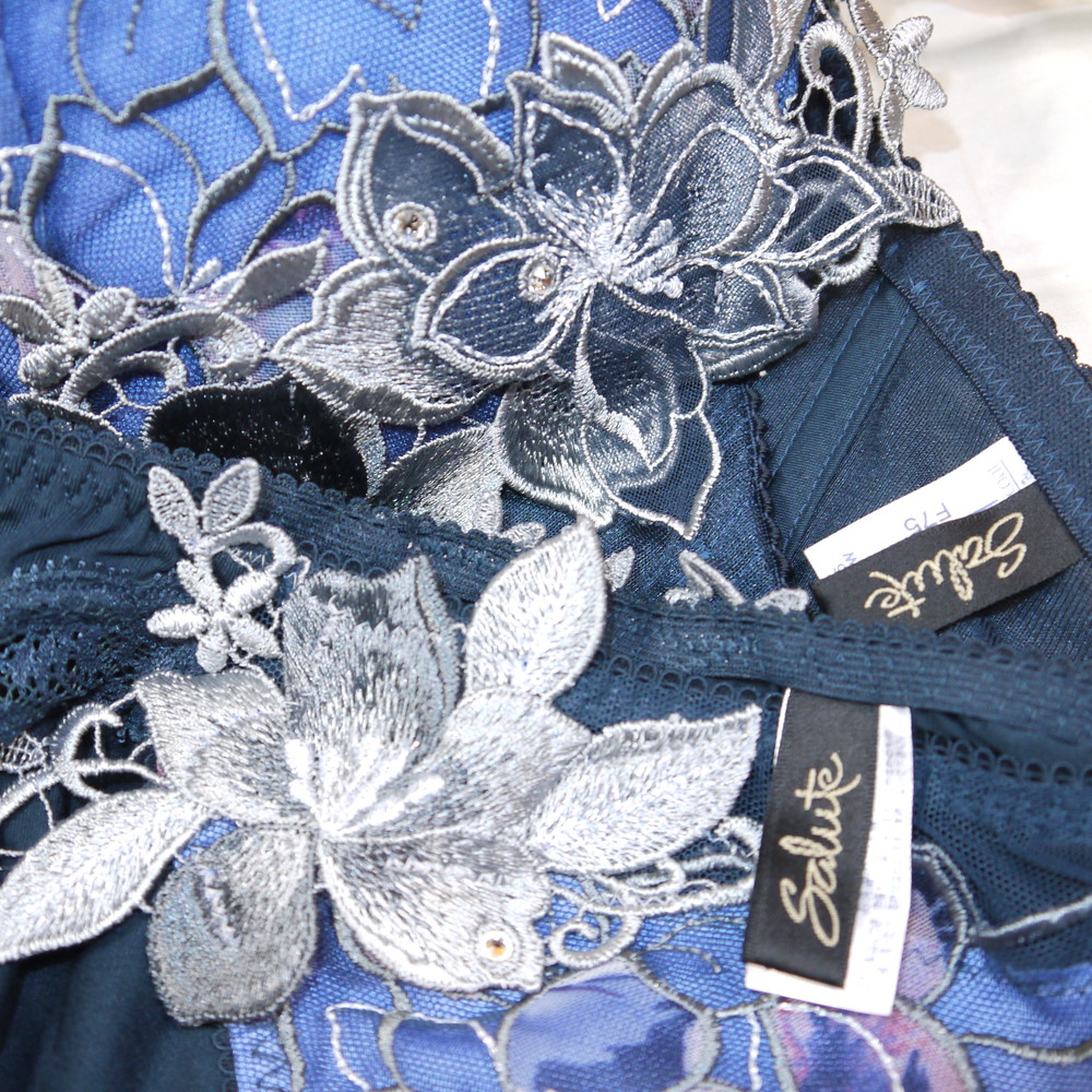 【BCランク/K43-】サルート 36G:F75*98 Mサイズ ★ ヴィーナス! 高級濃紺×金花アップリケ 煌スワロフ 爆乳 希少 PBセット