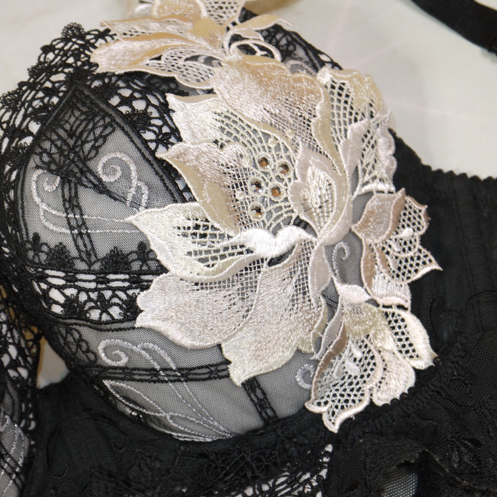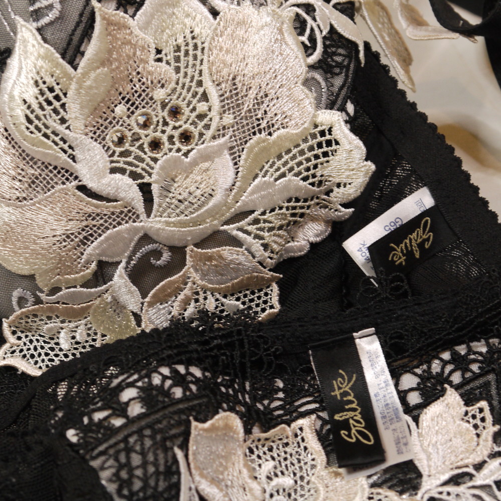 【BCランク/K43】サルート 04G:G65*90 Mサイズ ★ ジャズ!静寂を飾る大輪薔薇アップリケ&スワロフ 爆乳デカブラ 黒ランジェ T PBセット