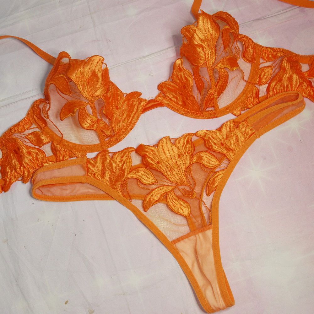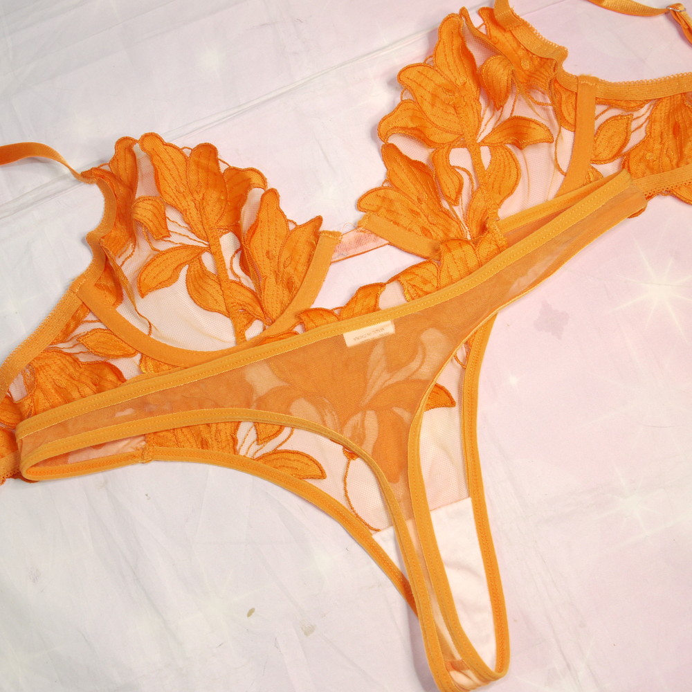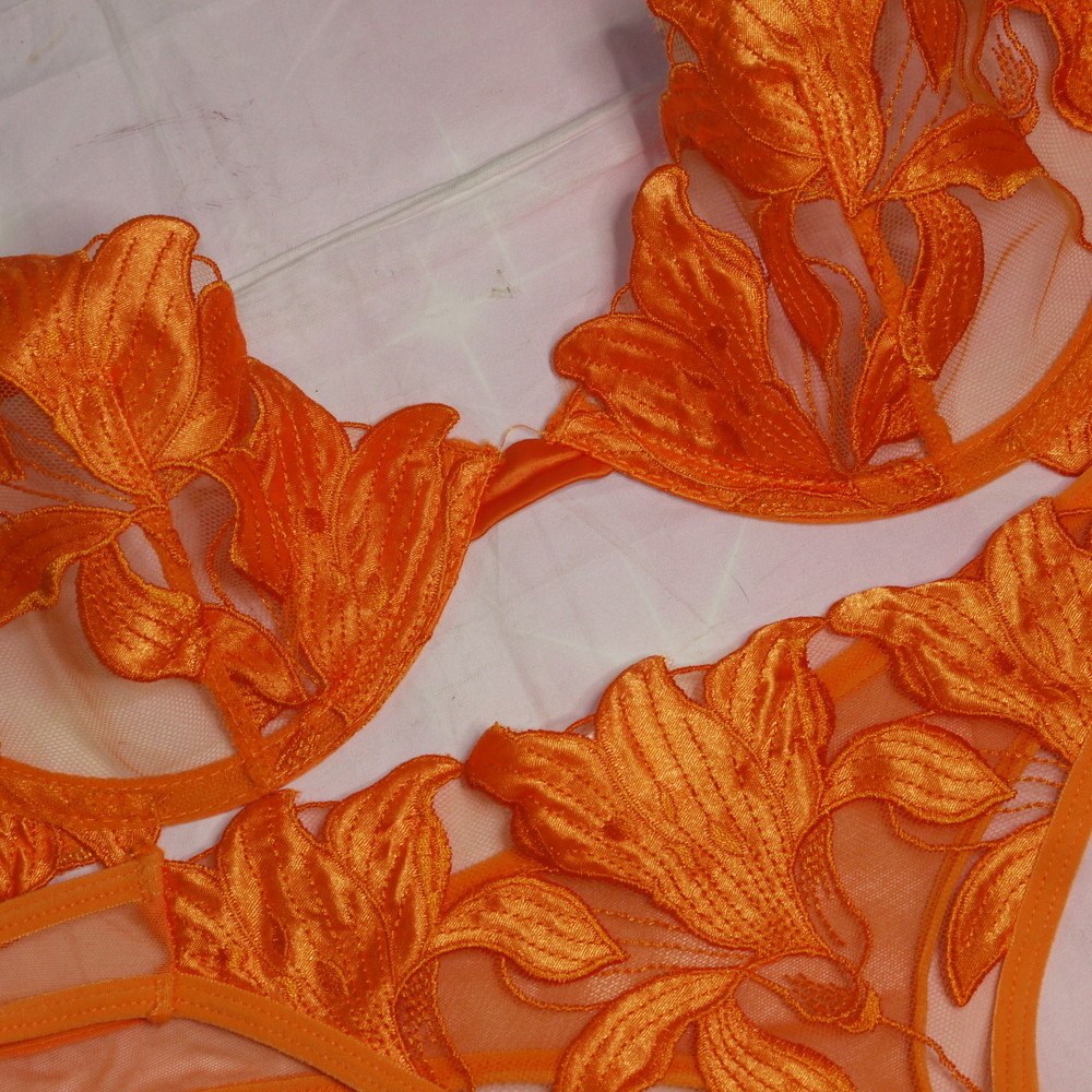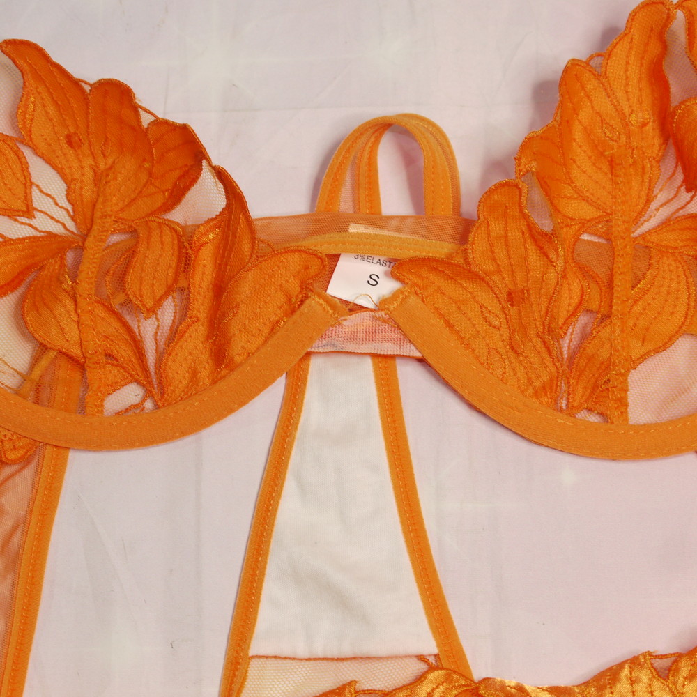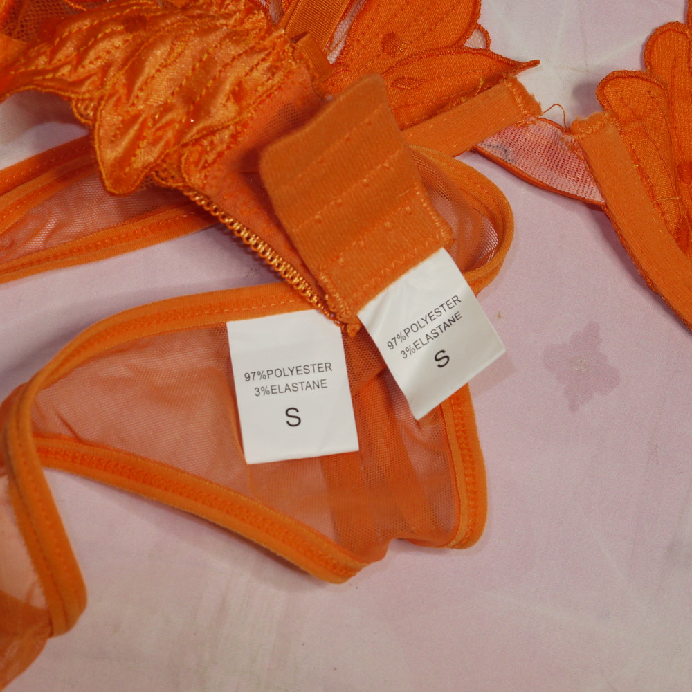 【Bランク/新古美品】インポート:S表記:CDランク ML程 ★ 艶やかオレンジ×花弁 透けSEXY・フロント激細 T PBセット