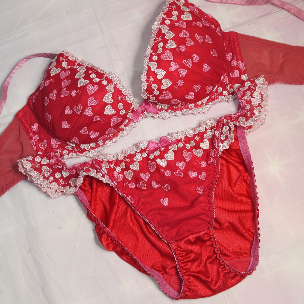 【BCランク】:D75 Mサイズ ★ ロリっと可愛い赤下着 ハート刺繍 JCJK系 PBセット