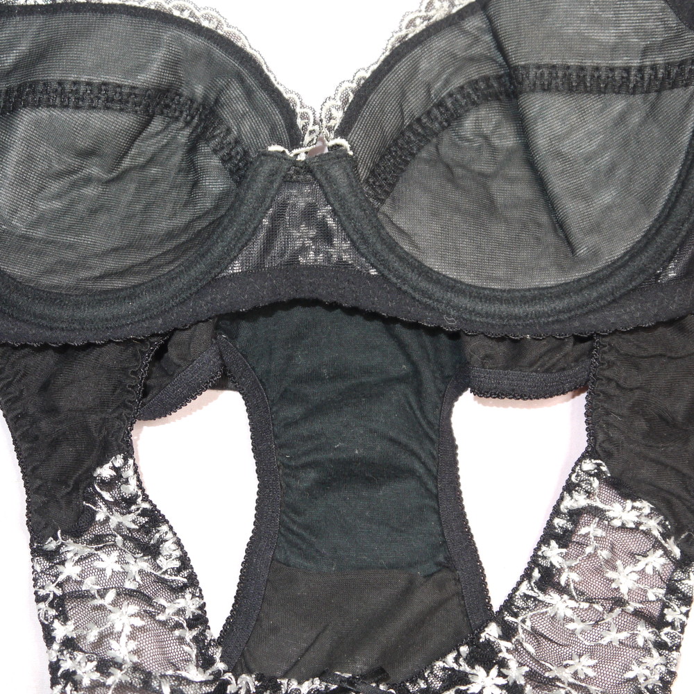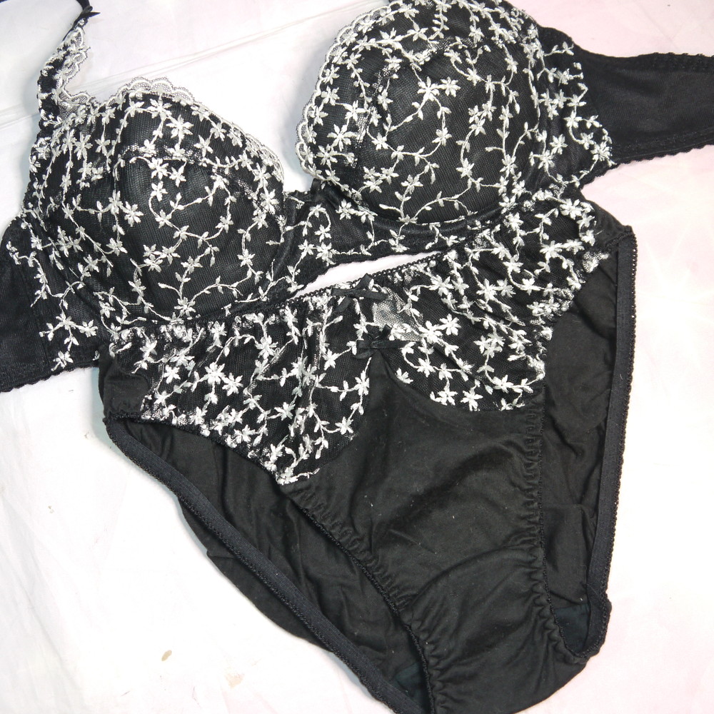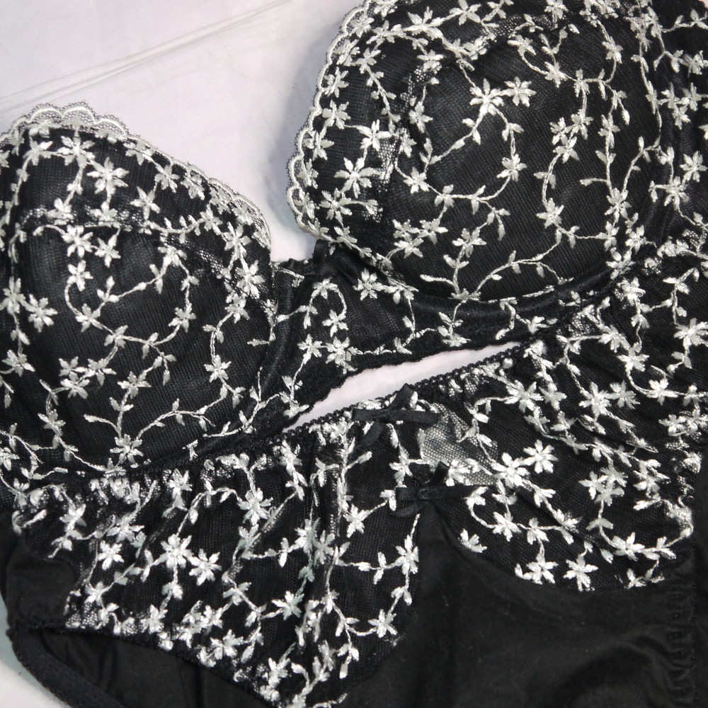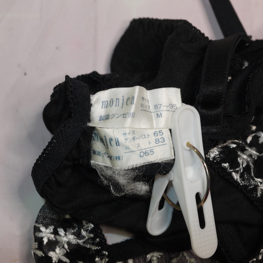 【Cランク/K43-】グンゼ:D65*83 Mサイズ ★ monica!大人でレトロな黒下着 小花 PBセット