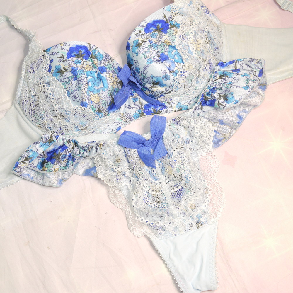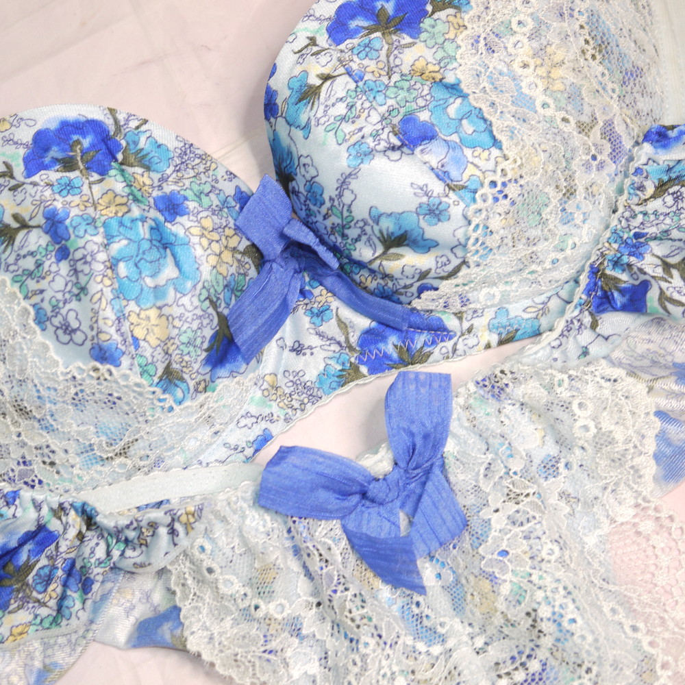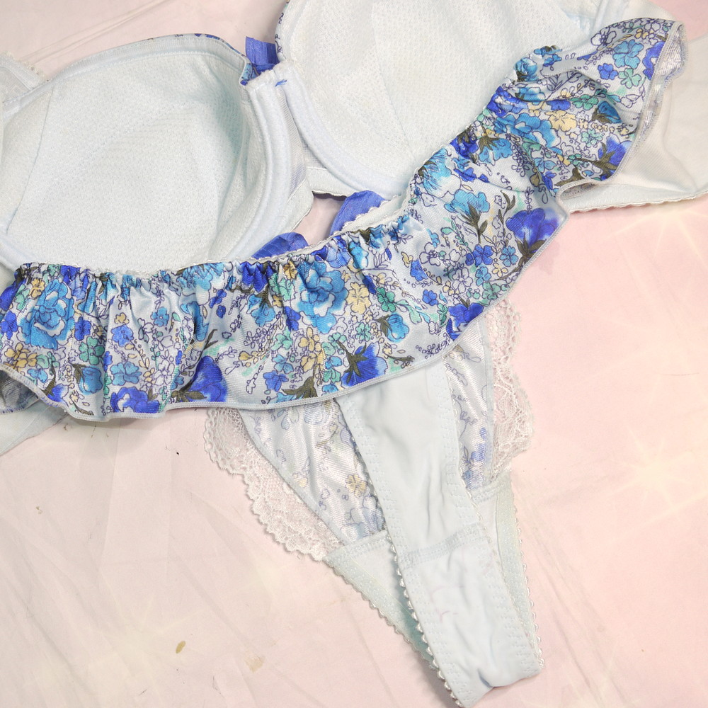 【BCランク/43】Wing:C75*90 Mサイズ ★ 清楚ライトブルー ALL花柄 フリル T PBセット
