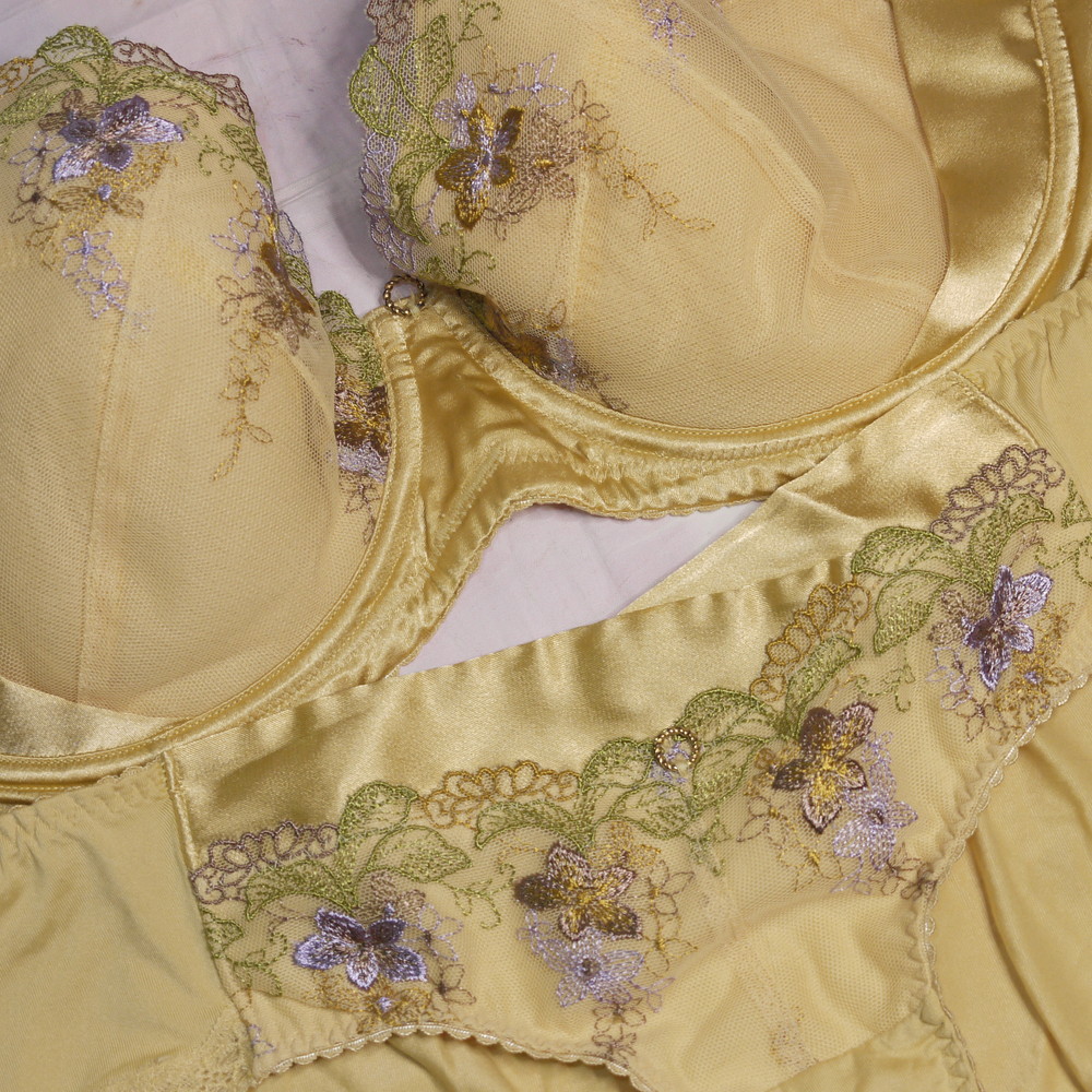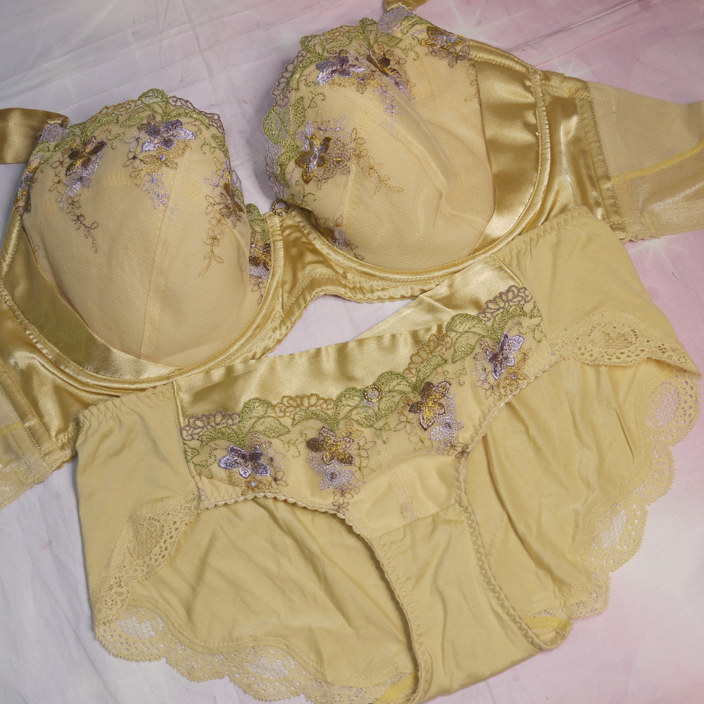 【BCランク/K43-】トリンプ:G75*100 Mサイズ ★ 高級ゴールド×豪華花刺繍 爆乳・超メガ PBセット