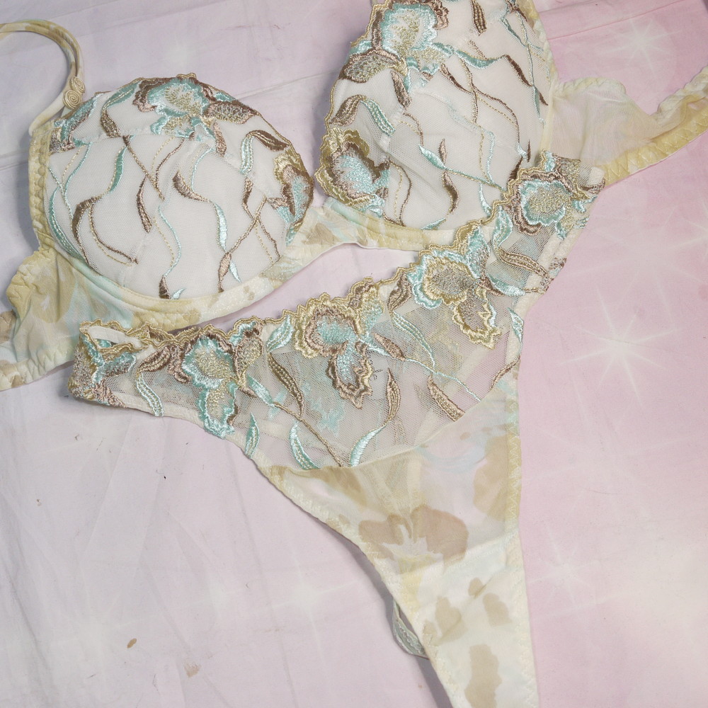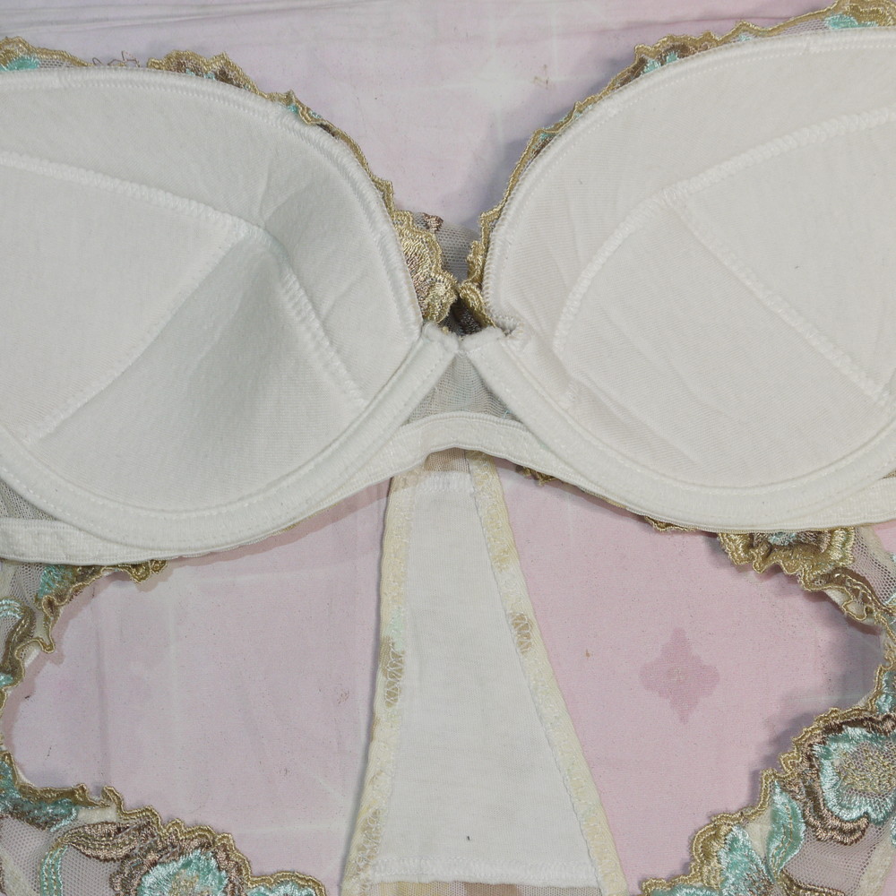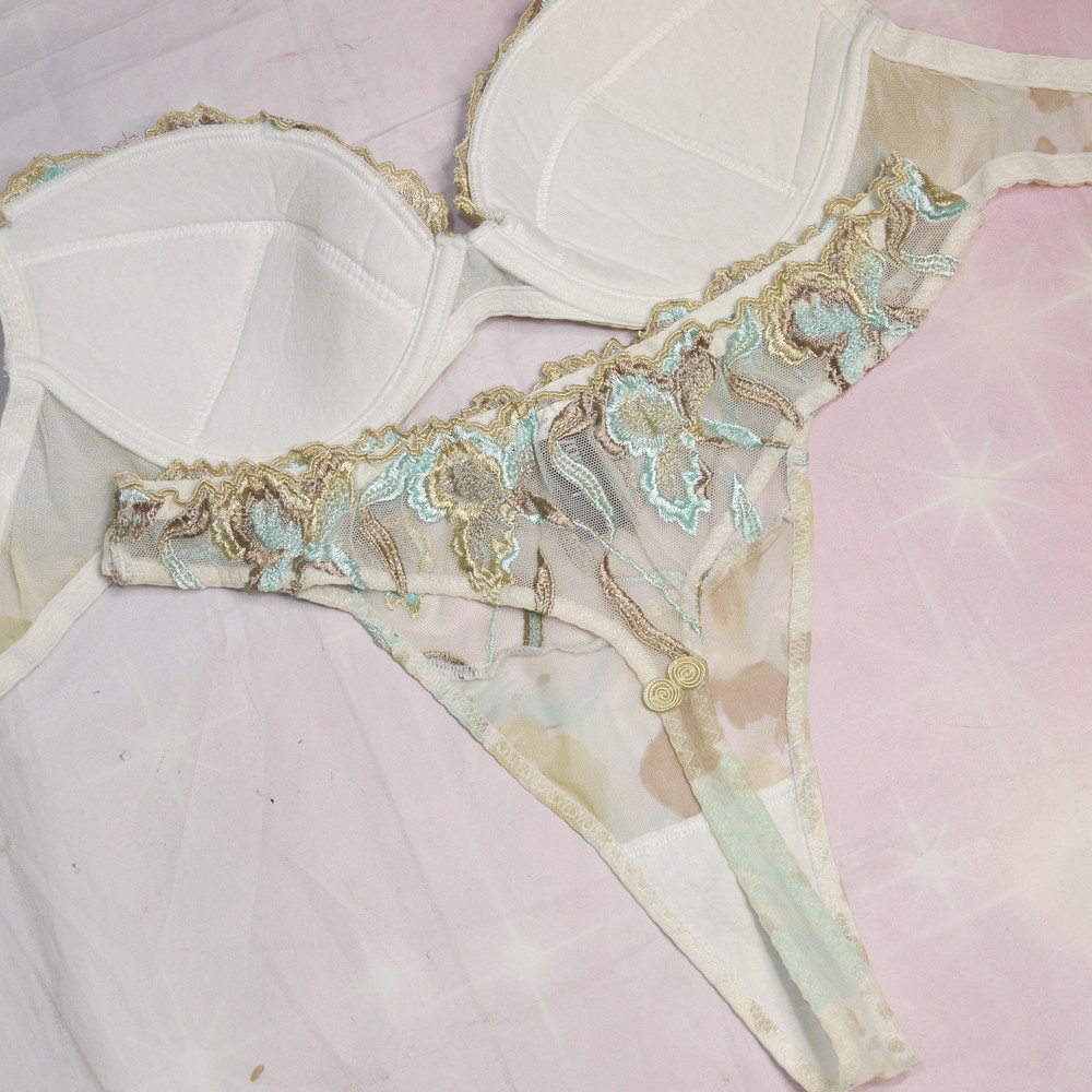 【BCランク】Aubade:34B L-LLサイズ程 ★ 金×リーフ 透かしランジェ ヴィンテージ感 T PBセット