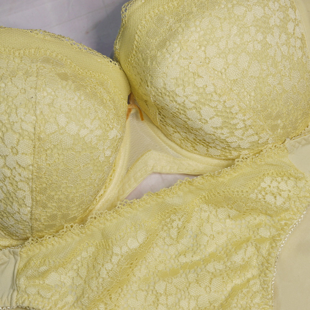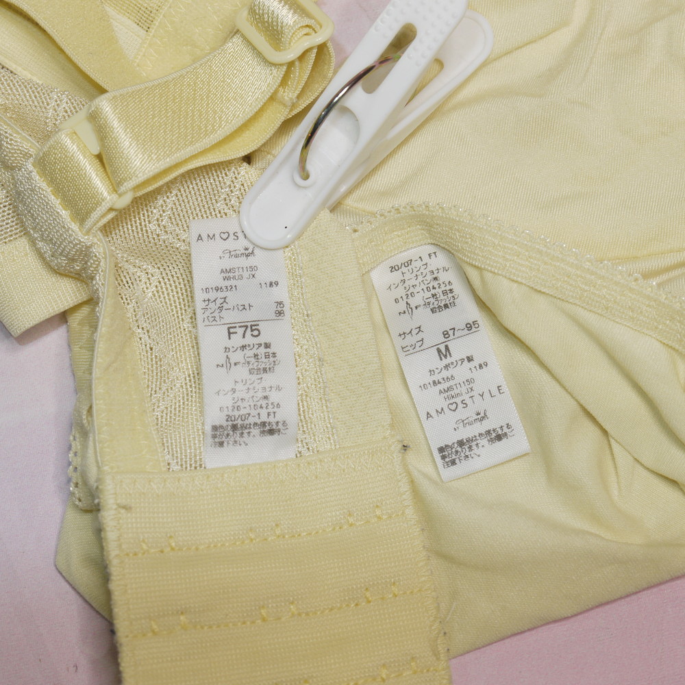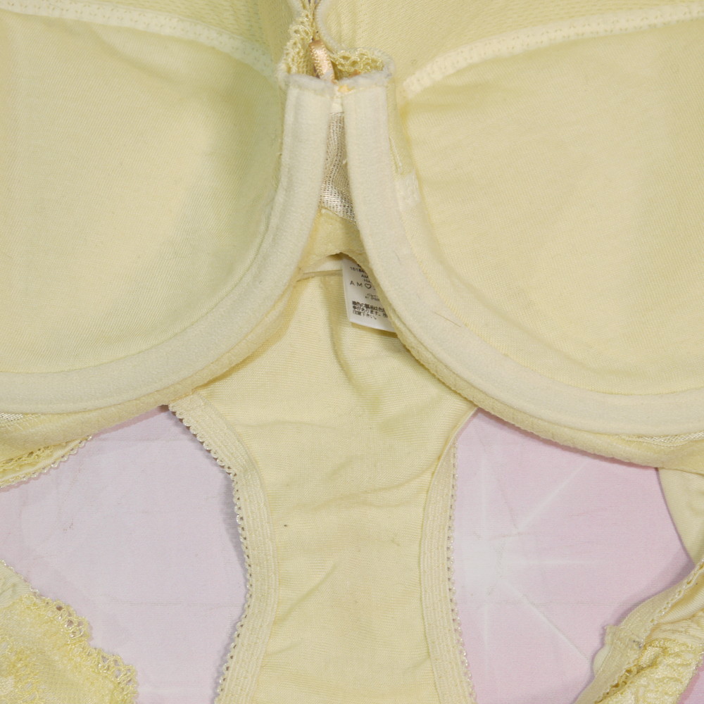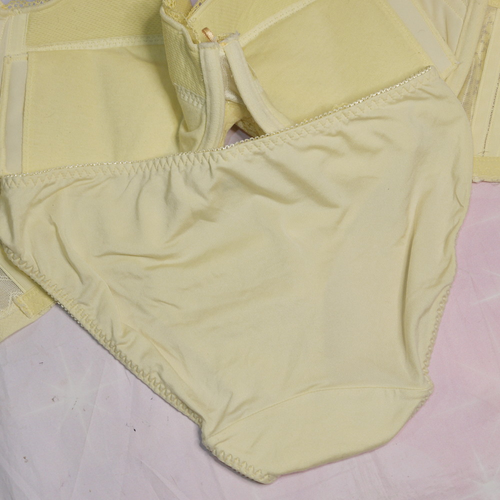 【Bランク/新古美品】トリンプ:F75*98 Mサイズ ★ 清楚イエロー 大人レース 爆乳デカブラ PBセット