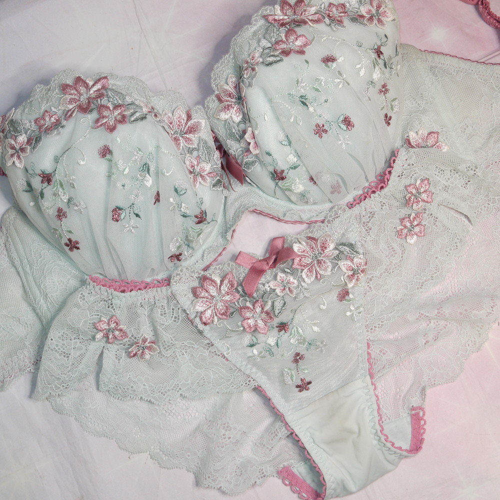 【BCランク/K43-】ケーズウェイ:H70*98 Mサイズ ★ Risa Magli!ヴィンテージブルー 豪華花刺繍×フリルレース 爆乳 PBセット