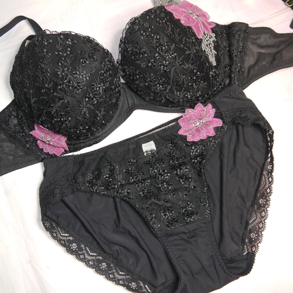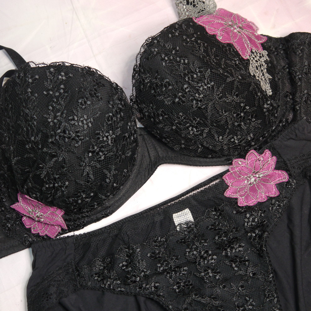 【BCランク/BK43】トリンプ:E75*95 Mサイズ ★ プレミアム!大人可愛い黒 小花×アップリケ 巨乳デカブラ PBセット
