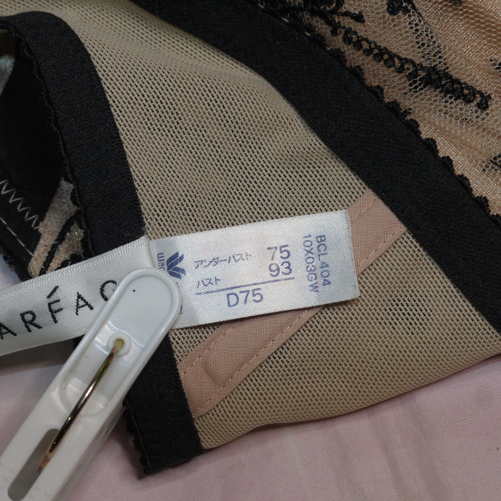 【Bランク/新古美品】パルファージュ:D75*93 ★ シャンパン 可愛い小花レース刺繍 お嬢様りぼんデザイン ブラ
