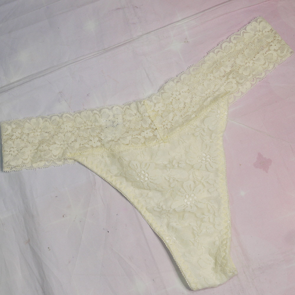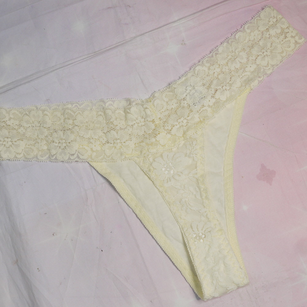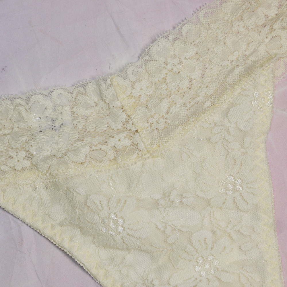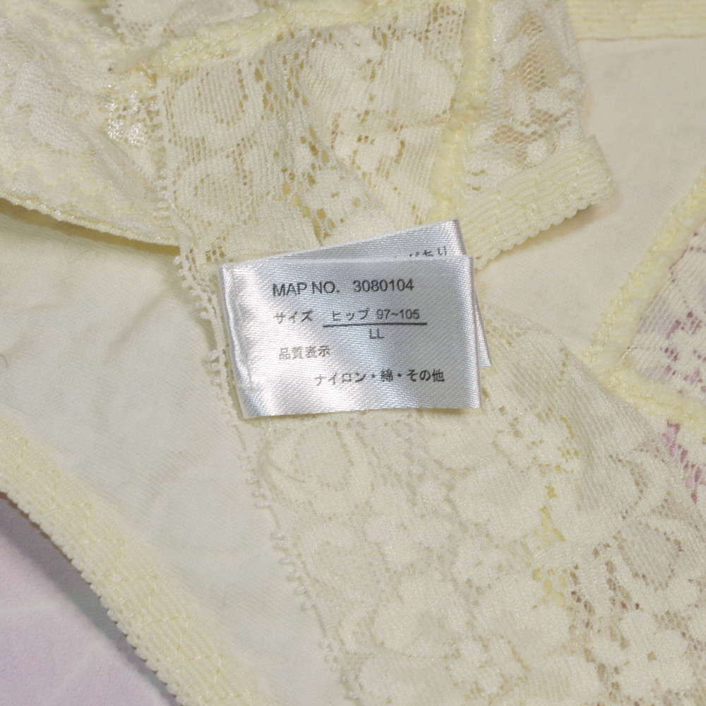 【Bランク/新古美品】ニッセン:LLサイズ ★ 淡イエロー 花レース 肉感メガ 激細フロント Tショーツ