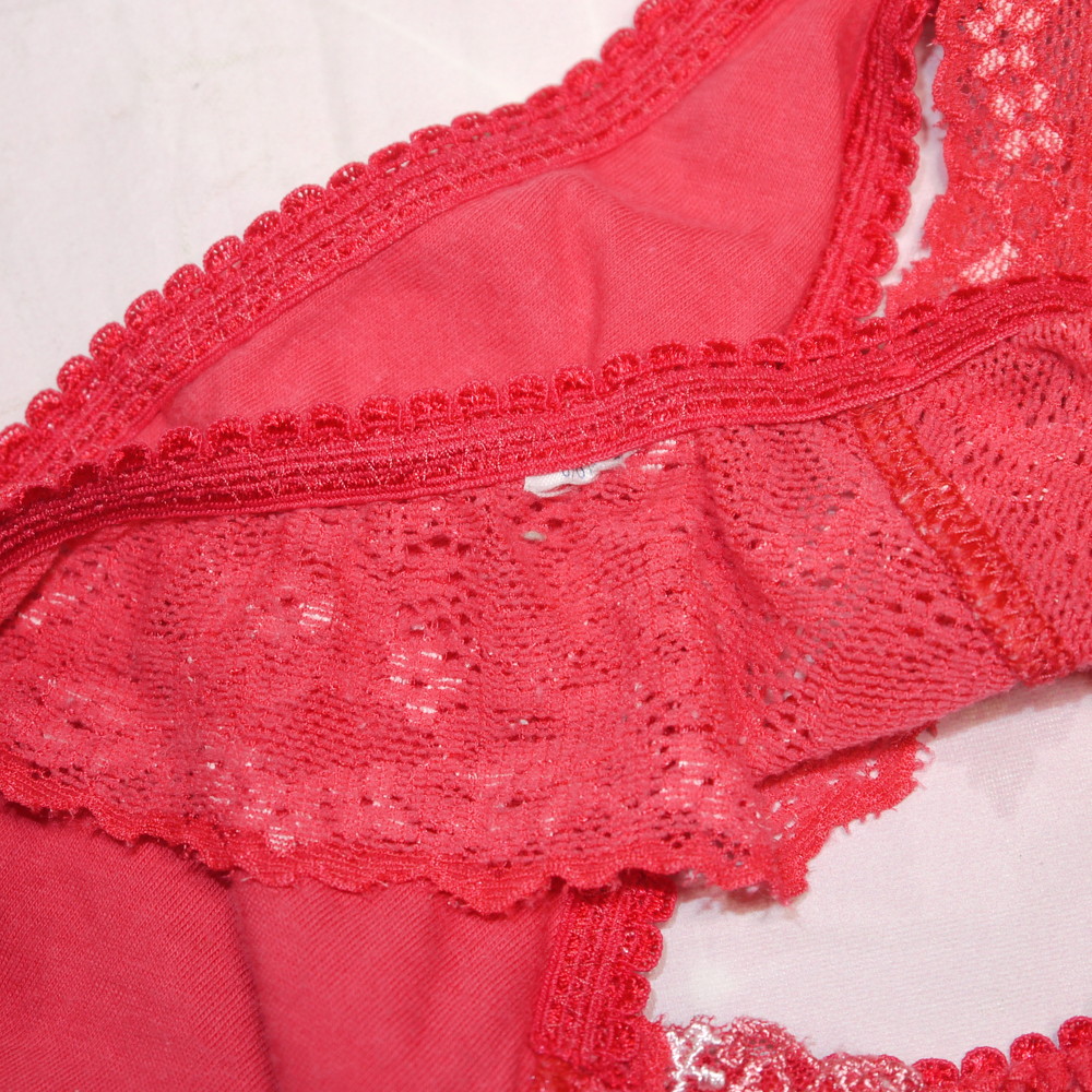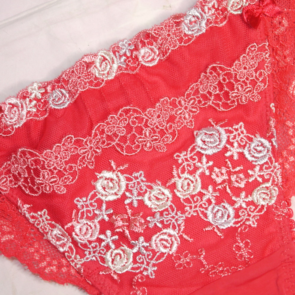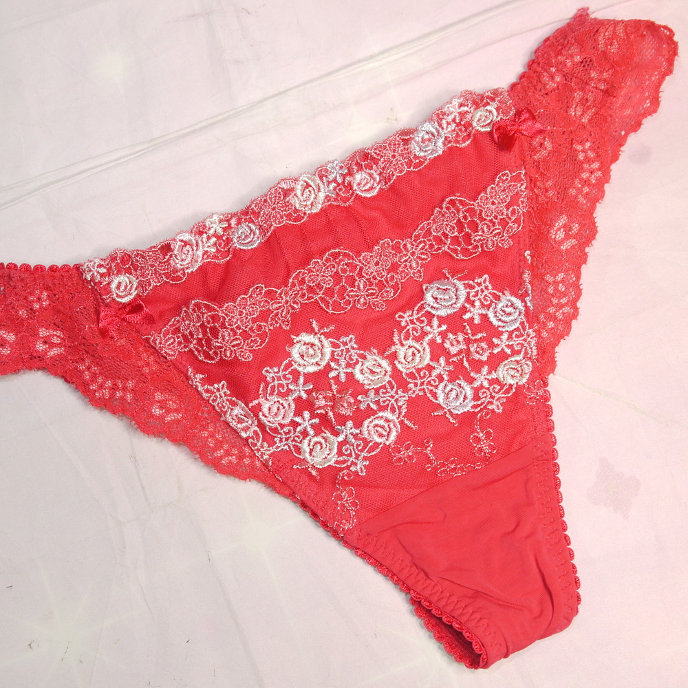 【Bランク/新古美品】ワコール?トリンプ?:MLサイズ程 ★ 艶やかレッド 小薔薇 お嬢様系 Tショーツ