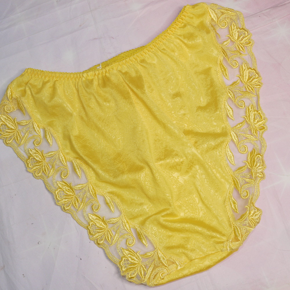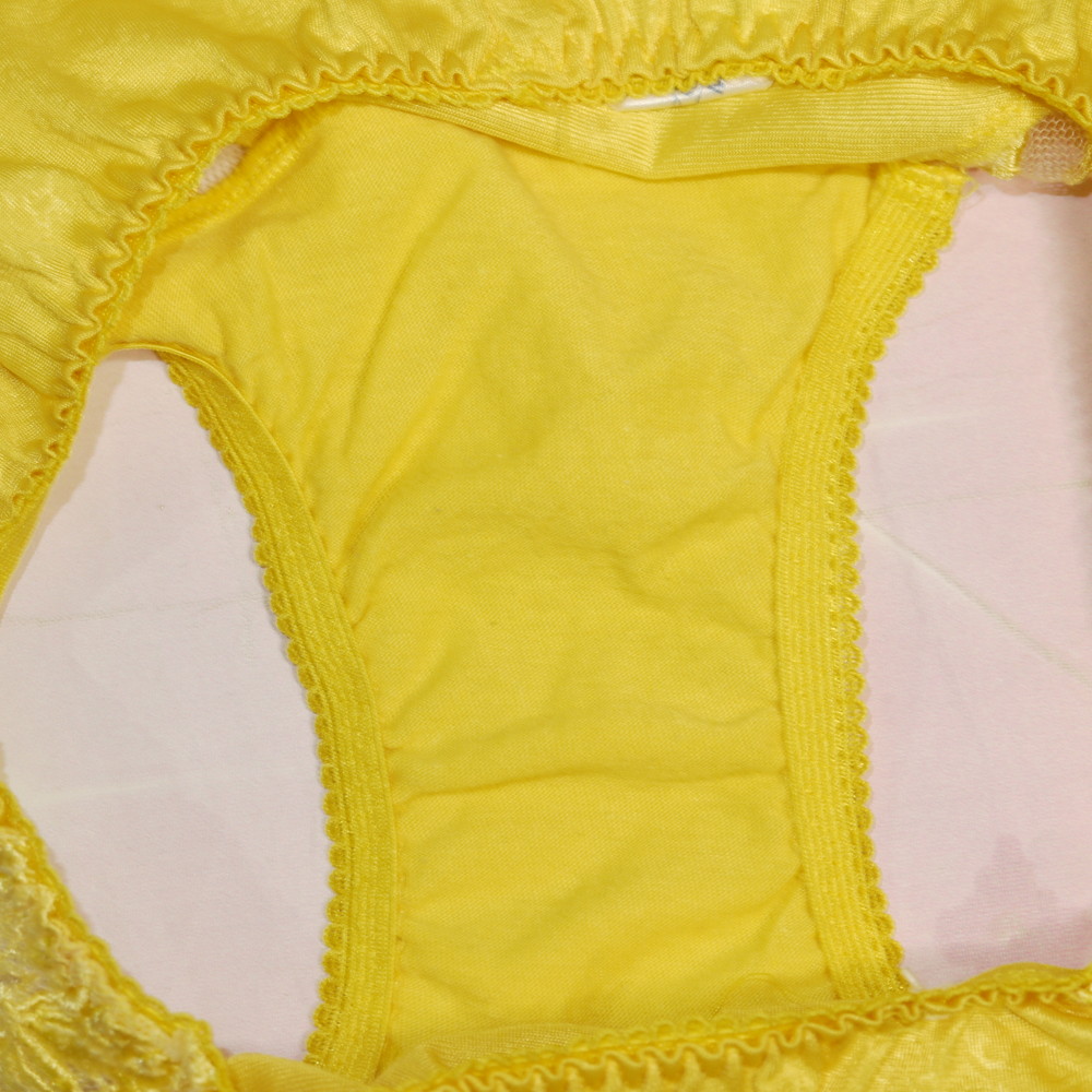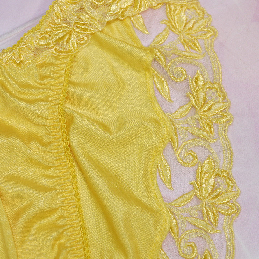 【Bランク/新古美品】ワコール:Mサイズ ★ 旧サルート品番!パキッとイエロー 裾花レース つるつる ショーツ