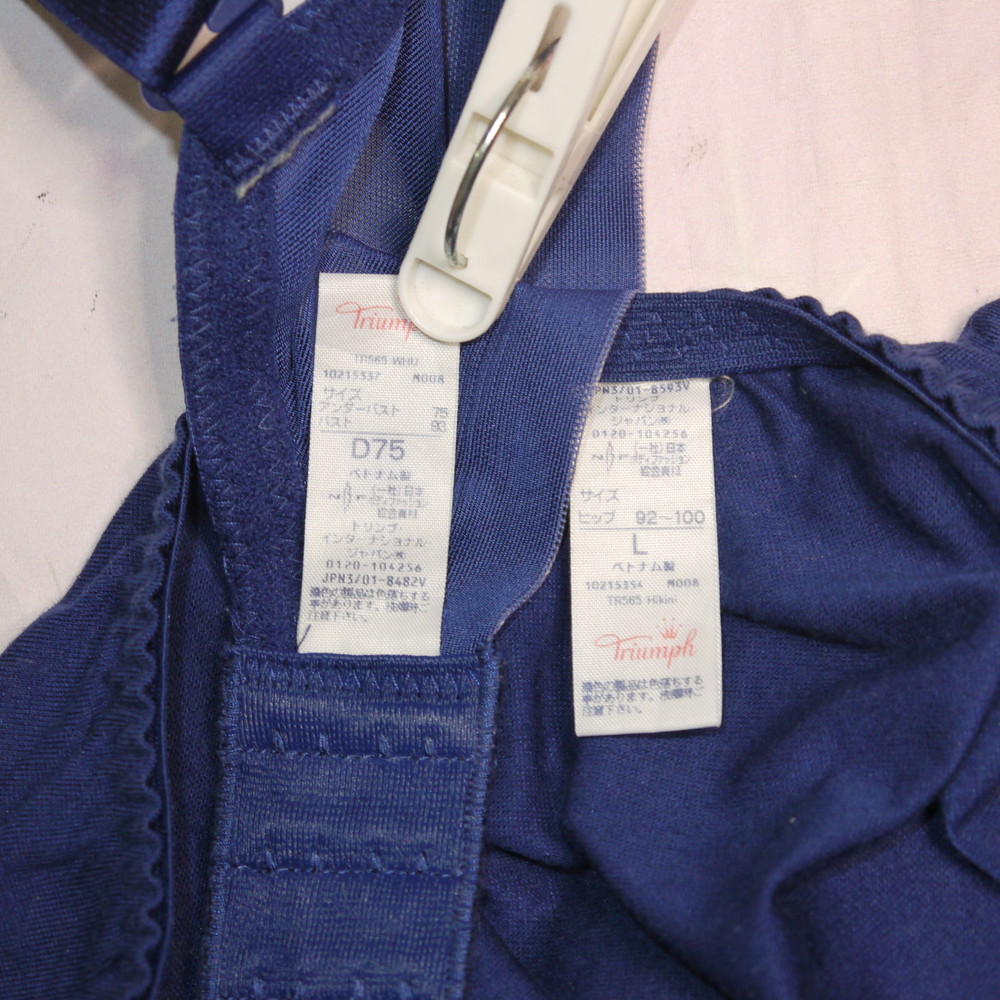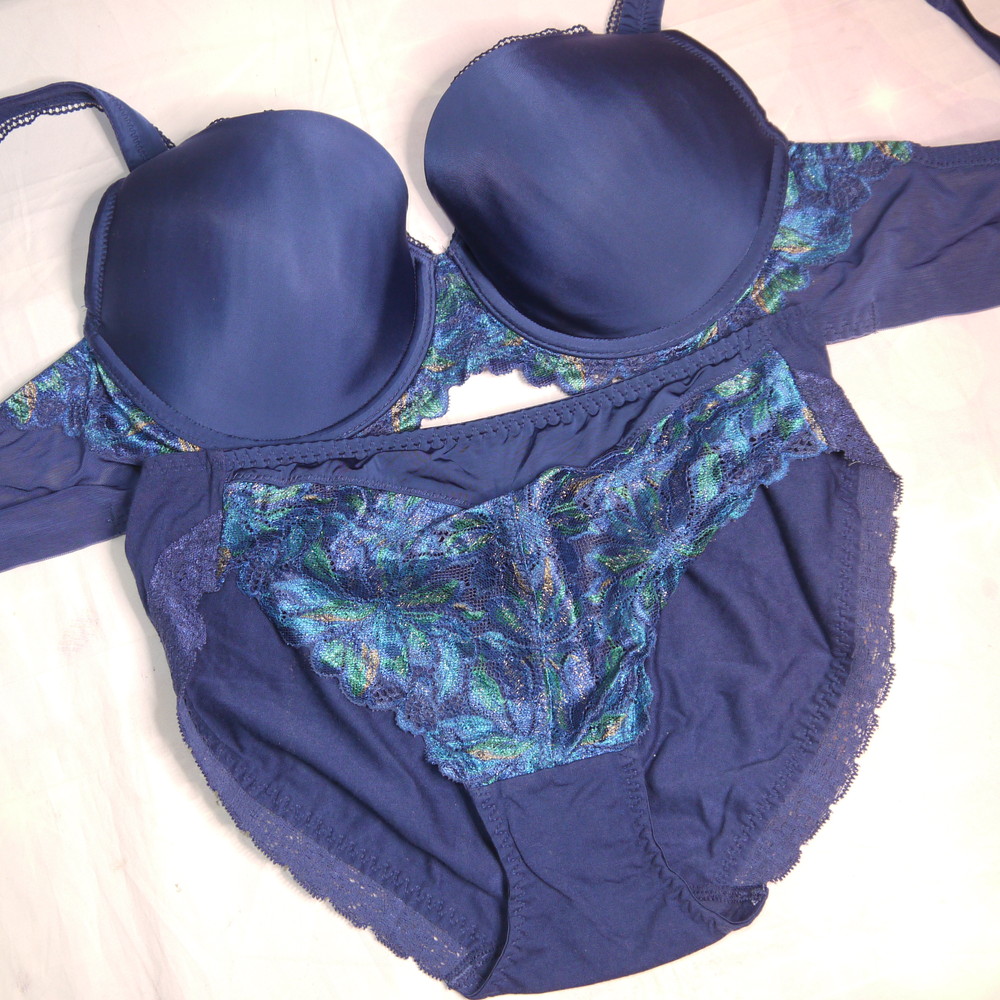【BCランク/K43】トリンプ:D75*93 Lサイズ ★ ネイビー マジョーラ風レース 艶妻系下着 PBセット