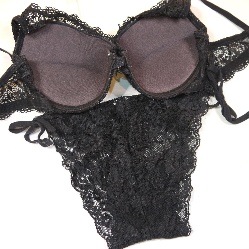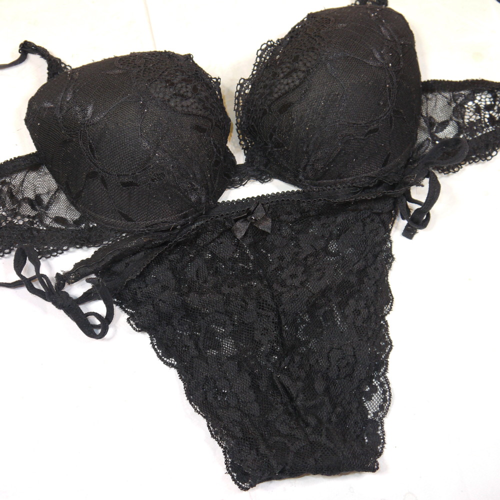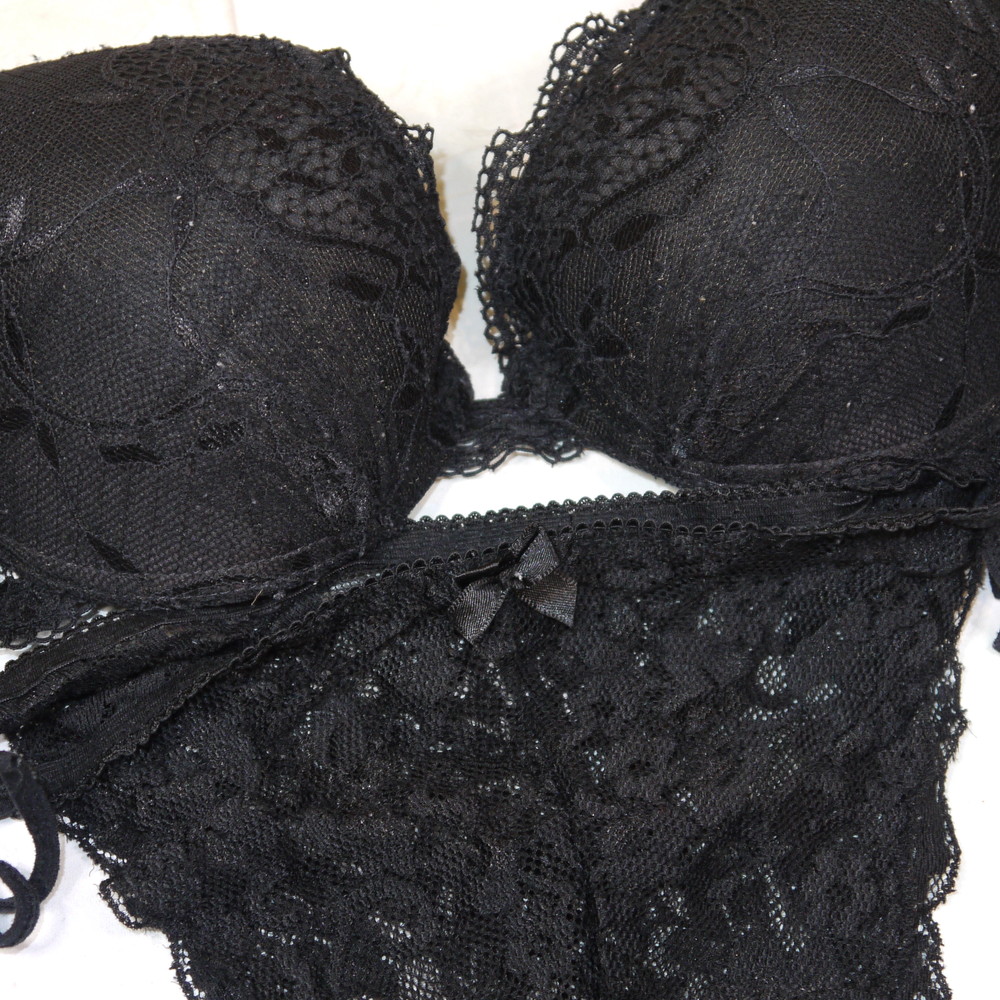 【Cランク/K43-】:CDカップ程 ML程 ★ クールブラック 紐パン ジャンク PBセット