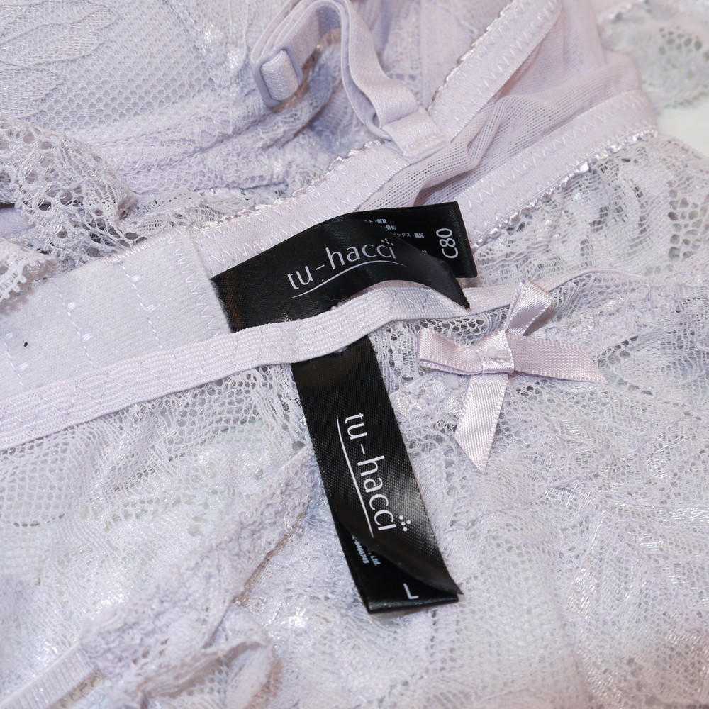 【Bランク/新古美品】tu-hacci:C80 Lサイズ ★ ヴィンテージパープル 総レース 透けSEXY お嬢様系ランジェ T PBセット