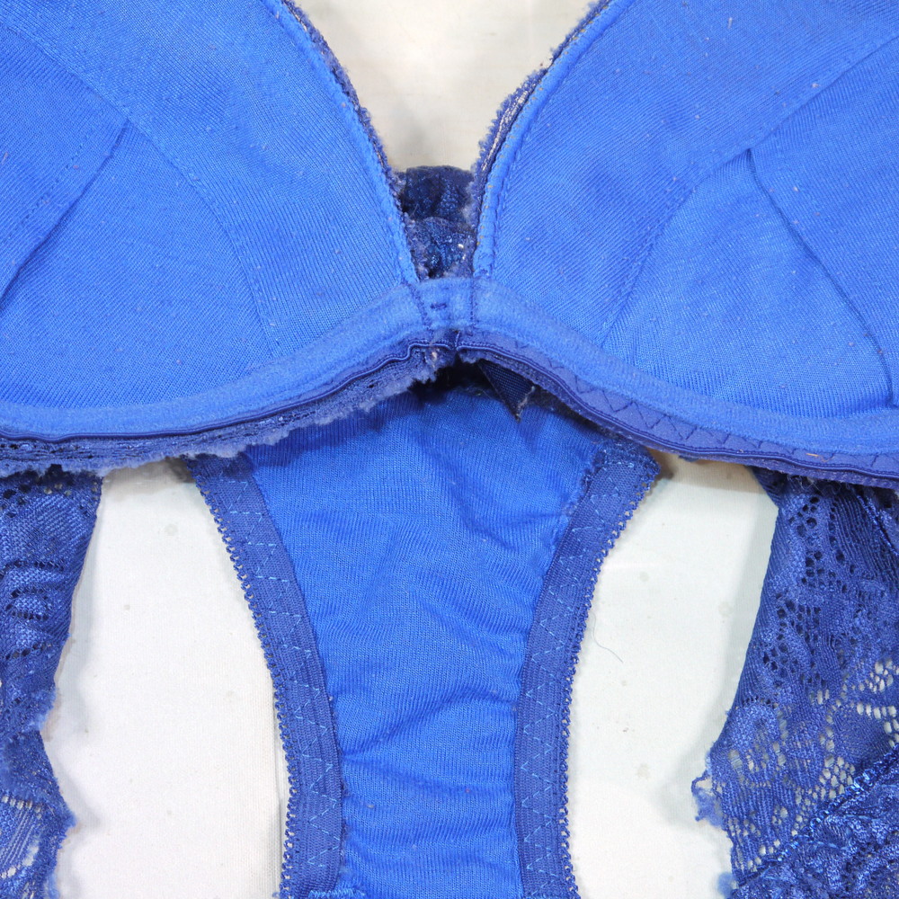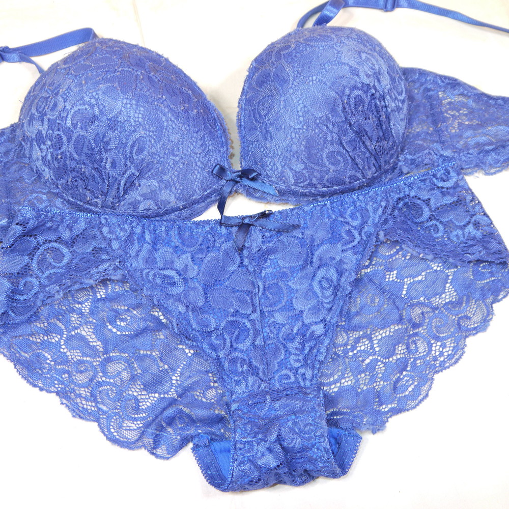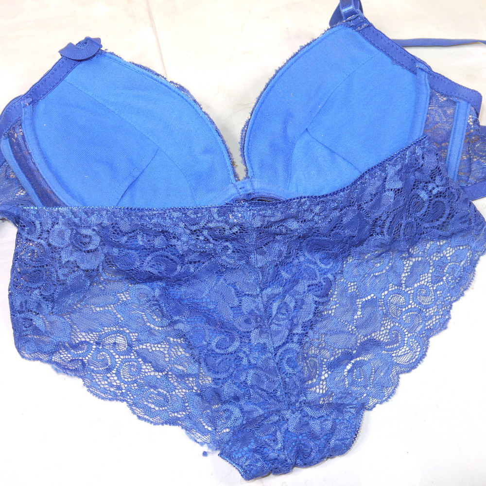 【BCランク】:CDカップ程 ML程 ★ 艶やか青下着 透けレース PBセット