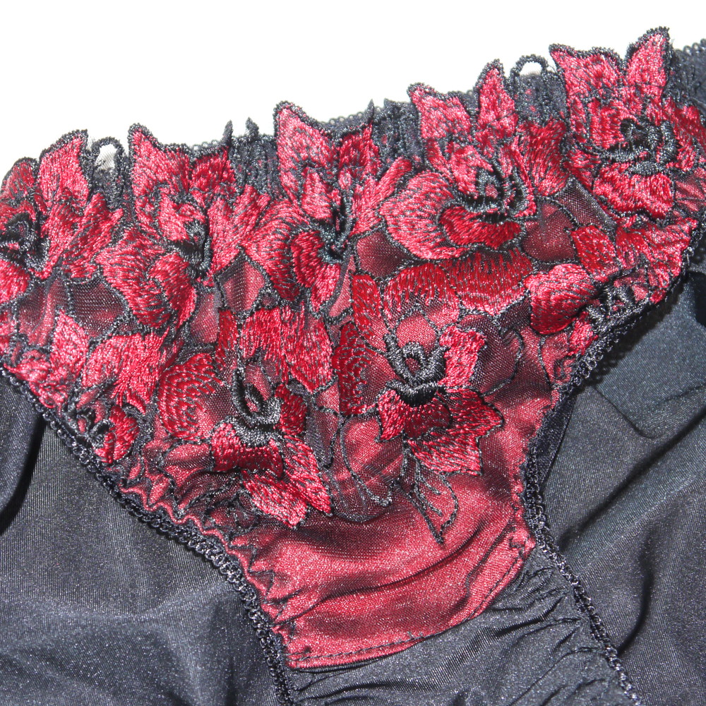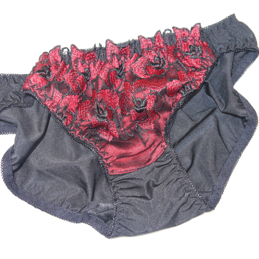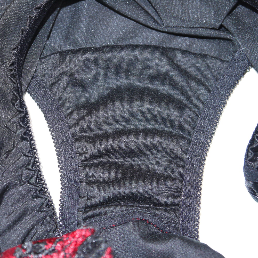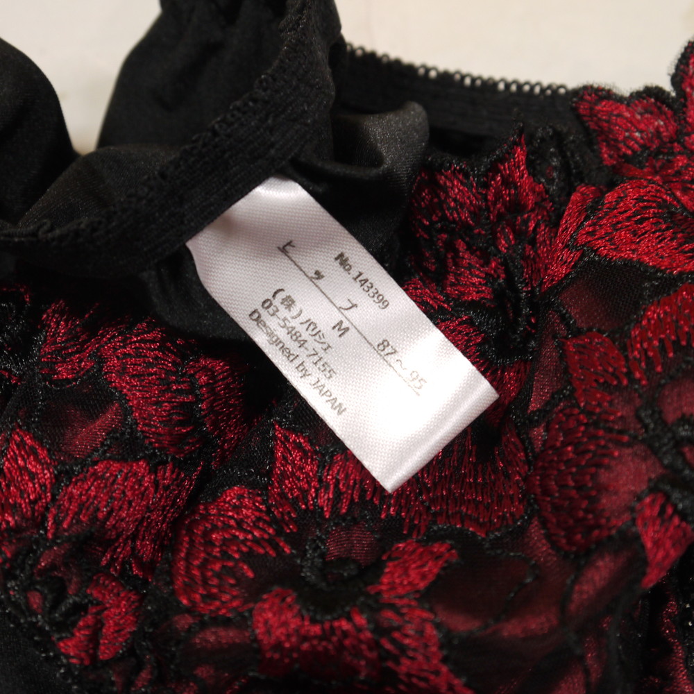 【ABランク/未使用?】パリシェ:Mサイズ ★ 高級感の黒×赤花 ショーツ