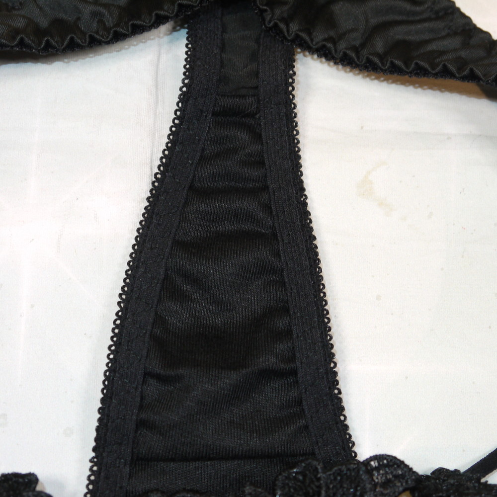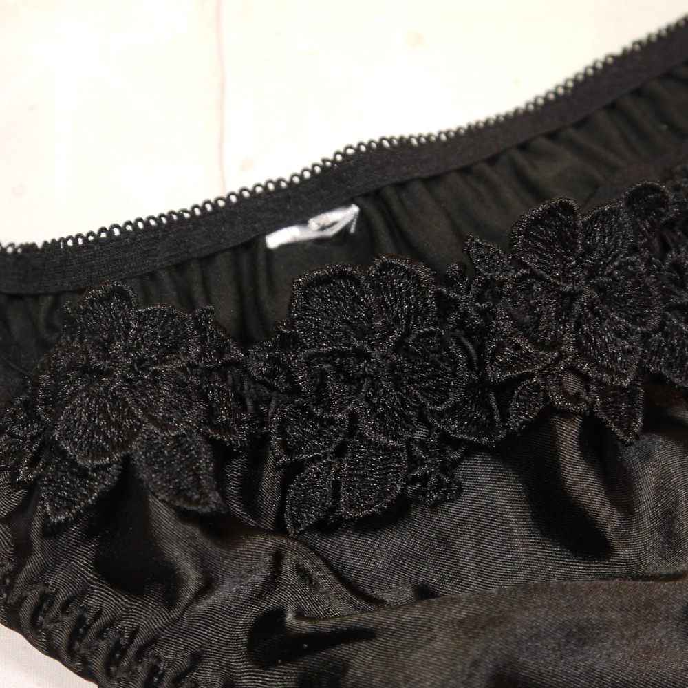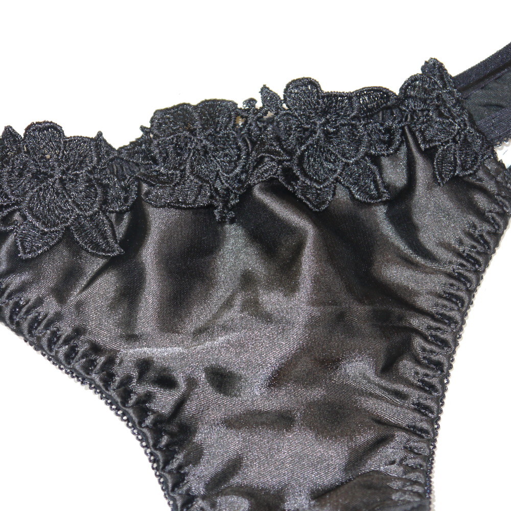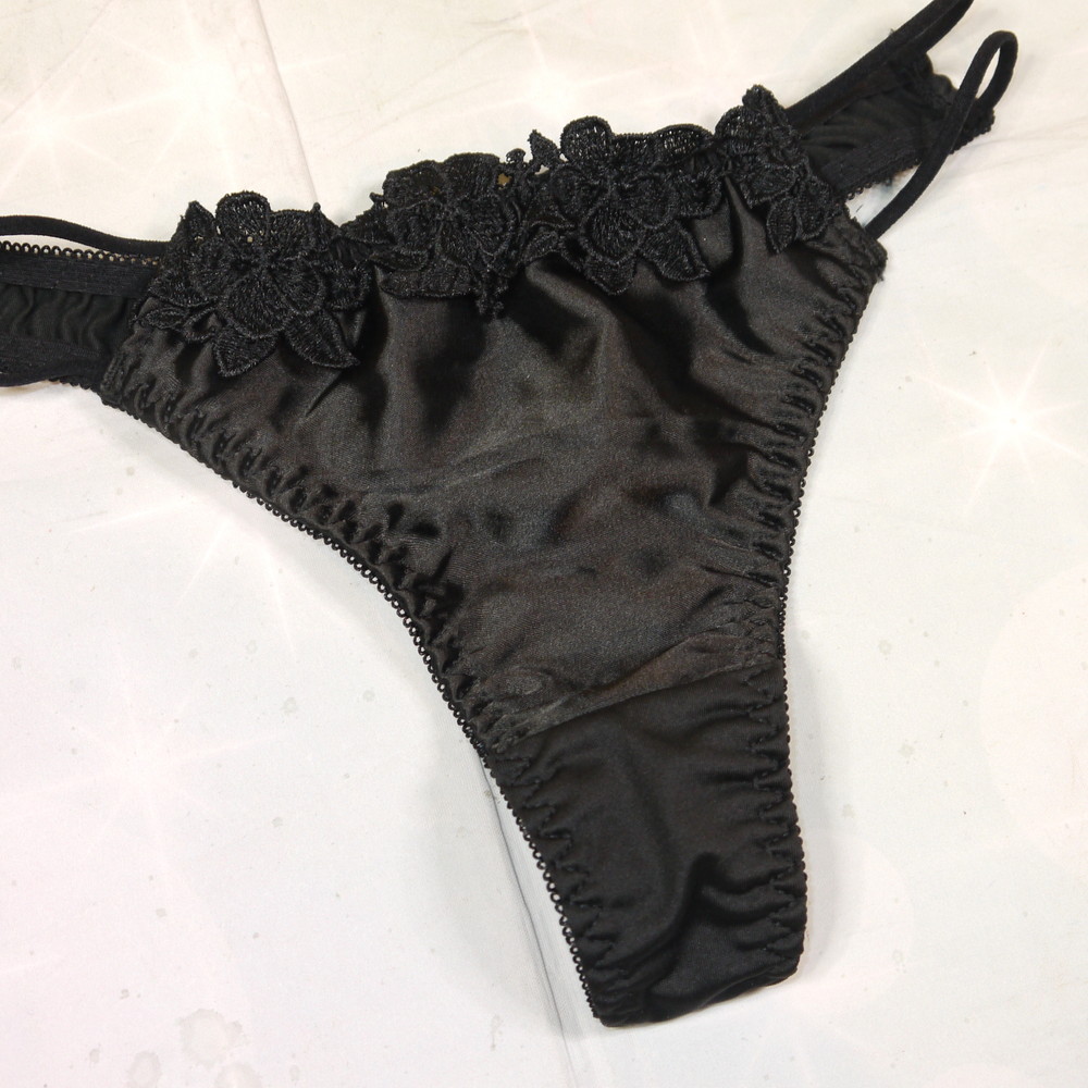 【ABランク/未使用?】:MLサイズ程 ★ 黒 厚手花刺繍 Tショーツ