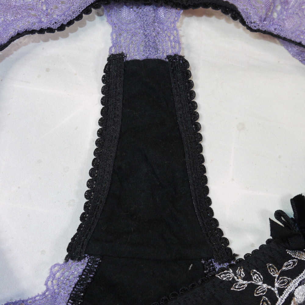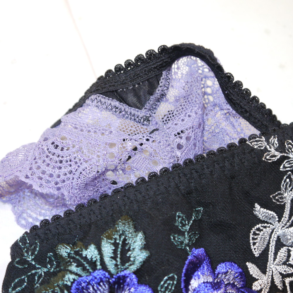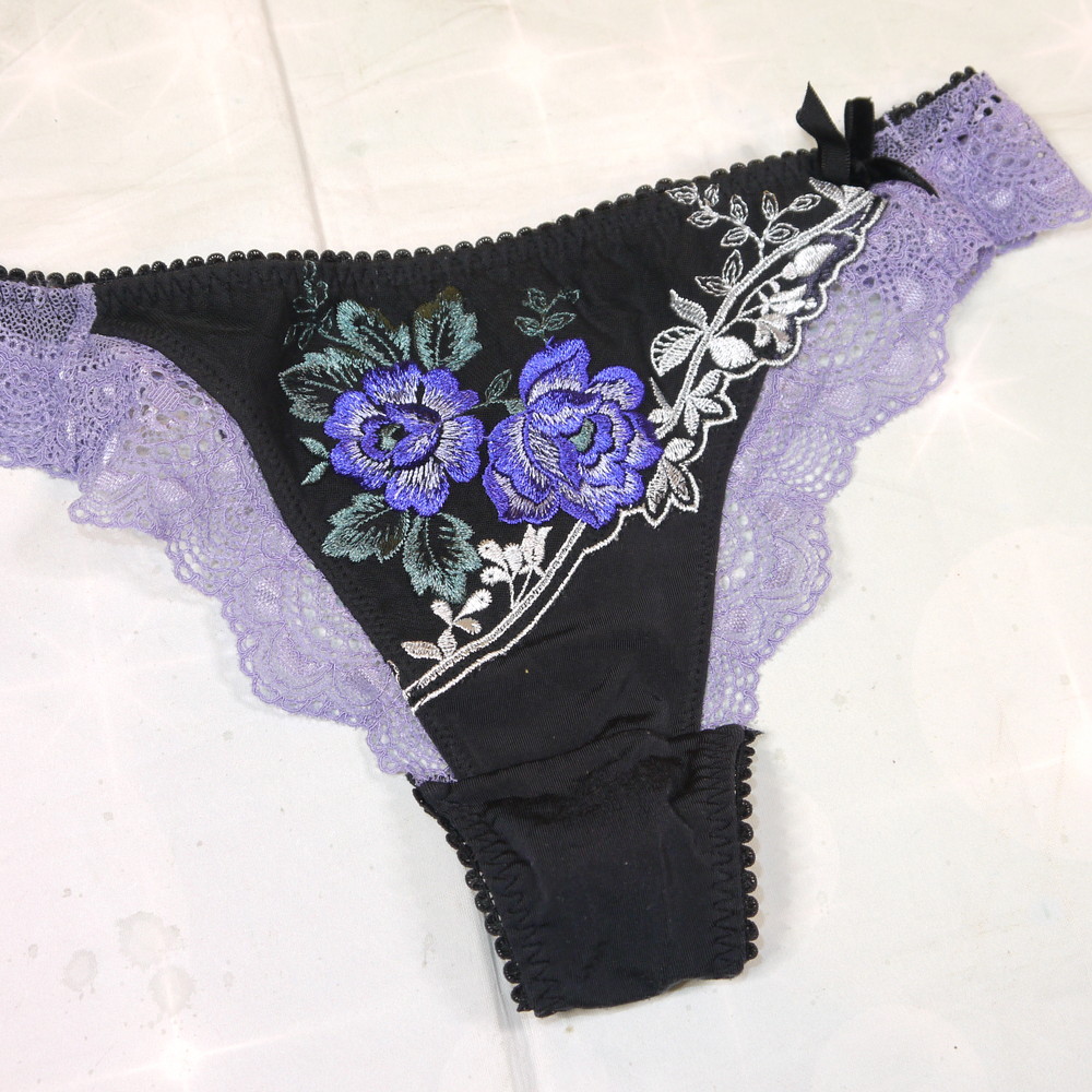 【Bランク/新古美品】トリンプ?:MLサイズ程 ★ 妖艶黒×青花 紫フリル Tショーツ