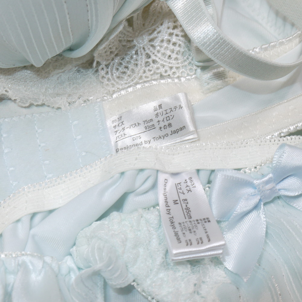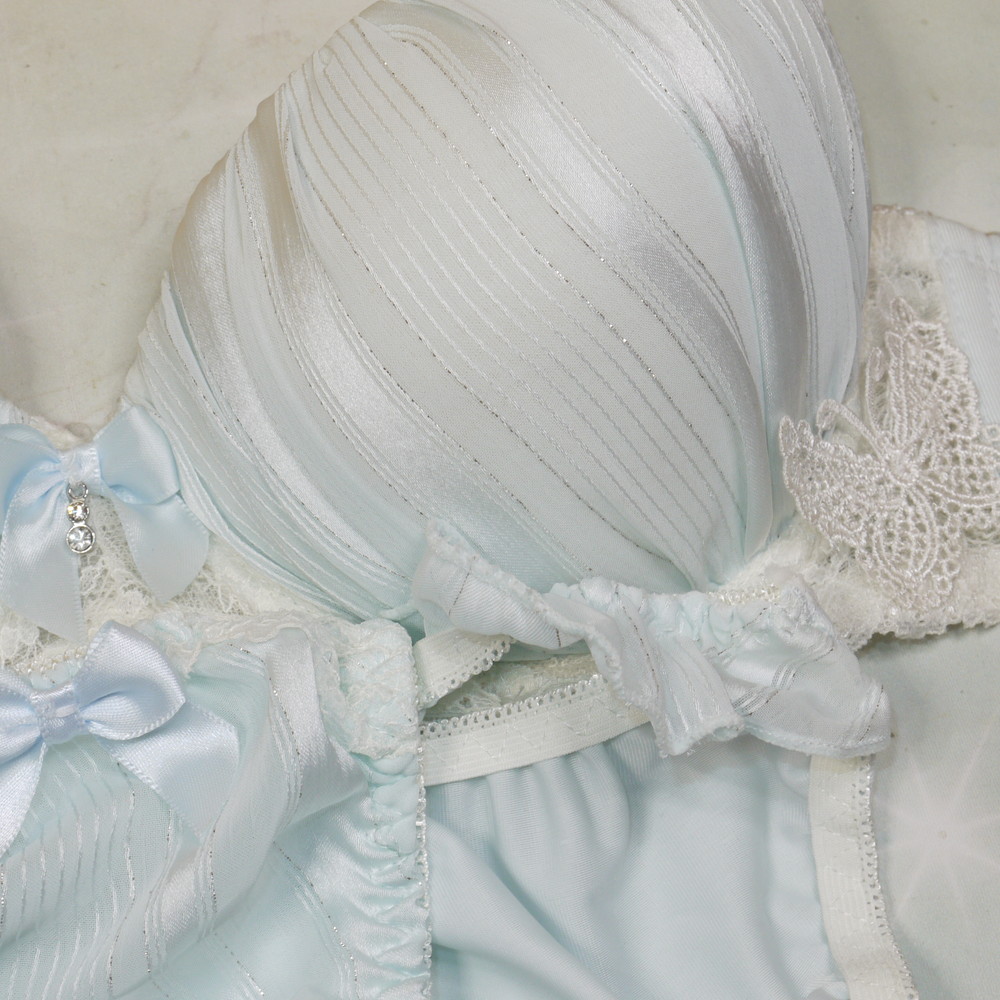 【BCランク】サンロード:D75*93 Mサイズ ★ 清楚ライトブルー×サテン 人気細ストライプ JCJK系 厚盛 PBセット