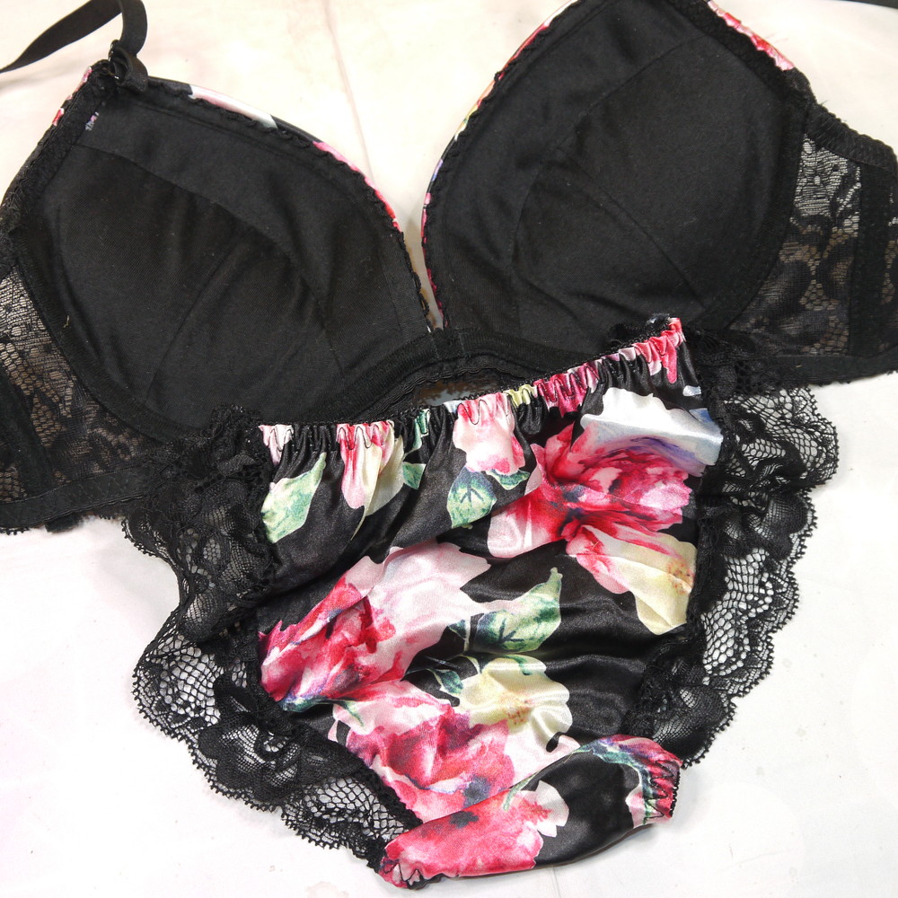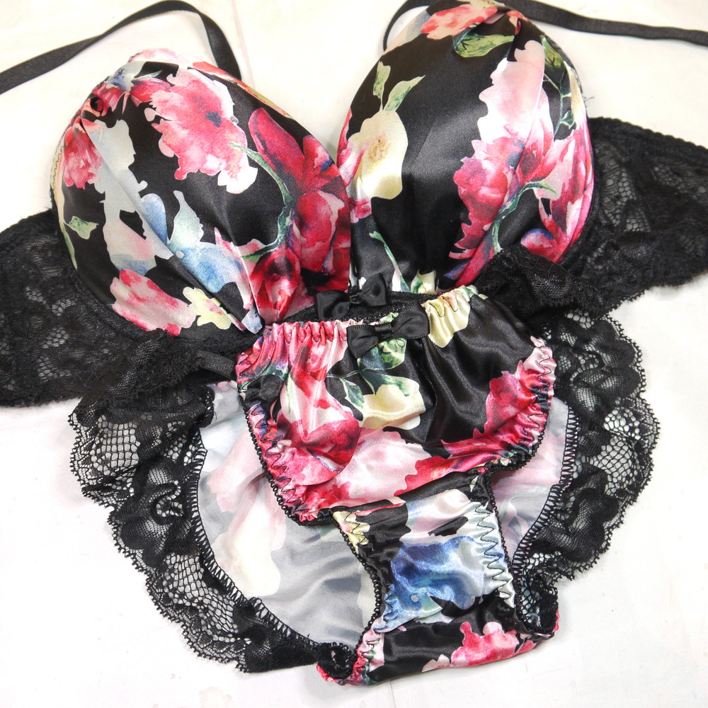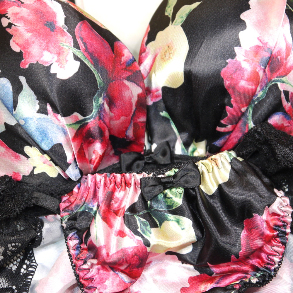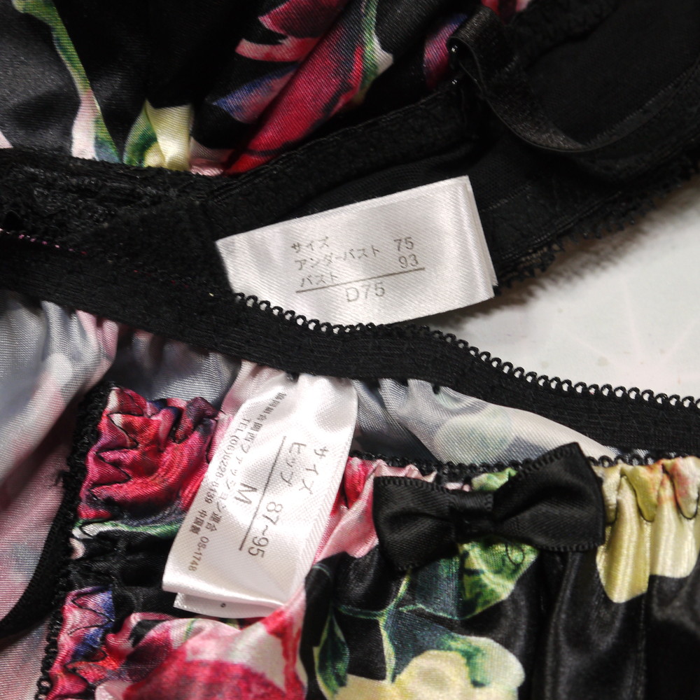 【Aランク/未使用】関西ファッション:D75*93 Mサイズ ★ 調光沢感 つるつる 黒×お花柄 平成もの PBセット 厚盛