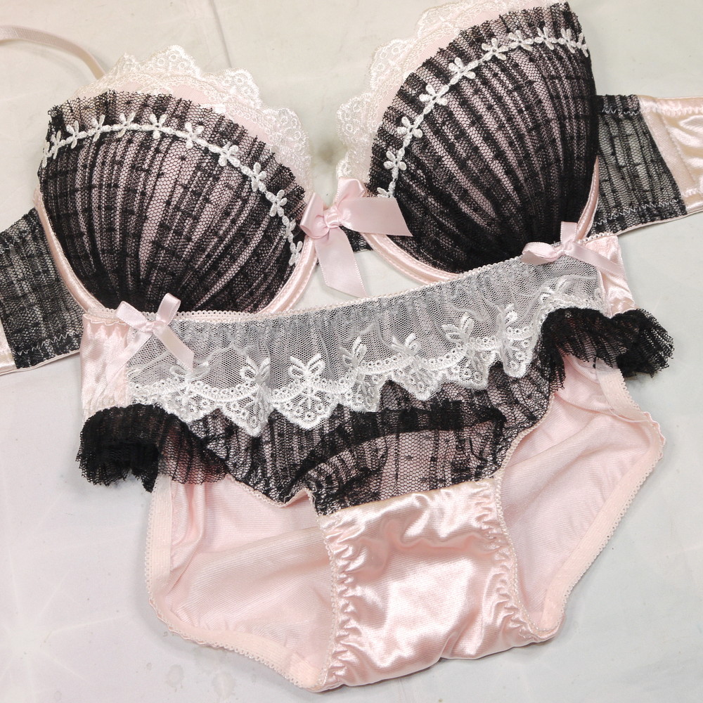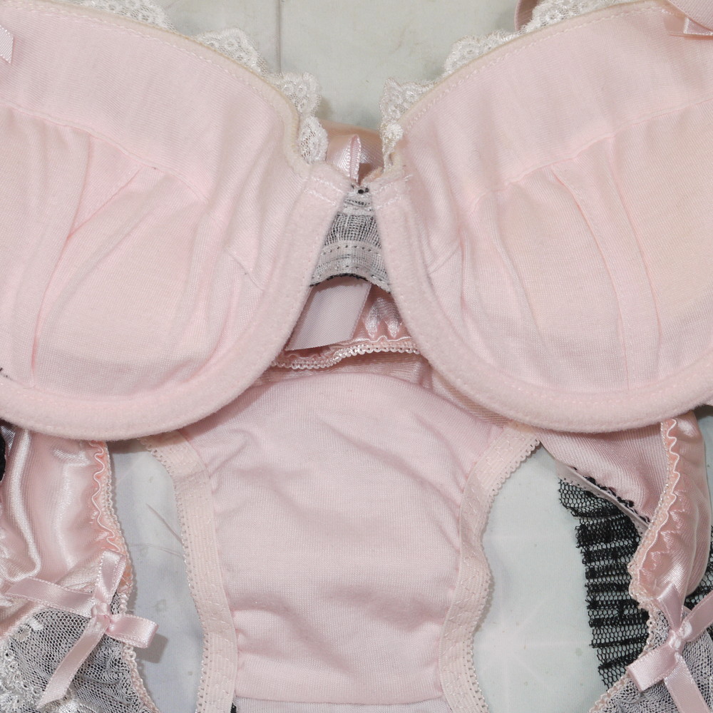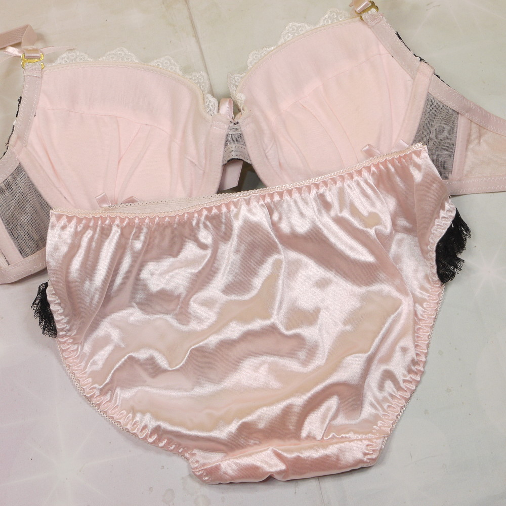【Bランク/新古美品】VINECO:C70*85 Mサイズ ★ 甘サテン&シェル風レース ぶりっ子系下着 厚盛 JCJK系 PBセット