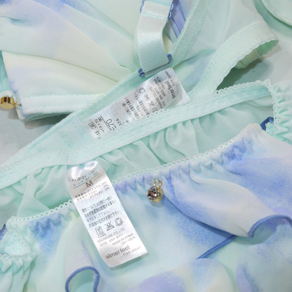 【Bランク/新古美品】エメフィール:E70*90 Mサイズ ★ 清楚感溢れるライトブルー フリル 厚盛 白ギャル系 PBセット