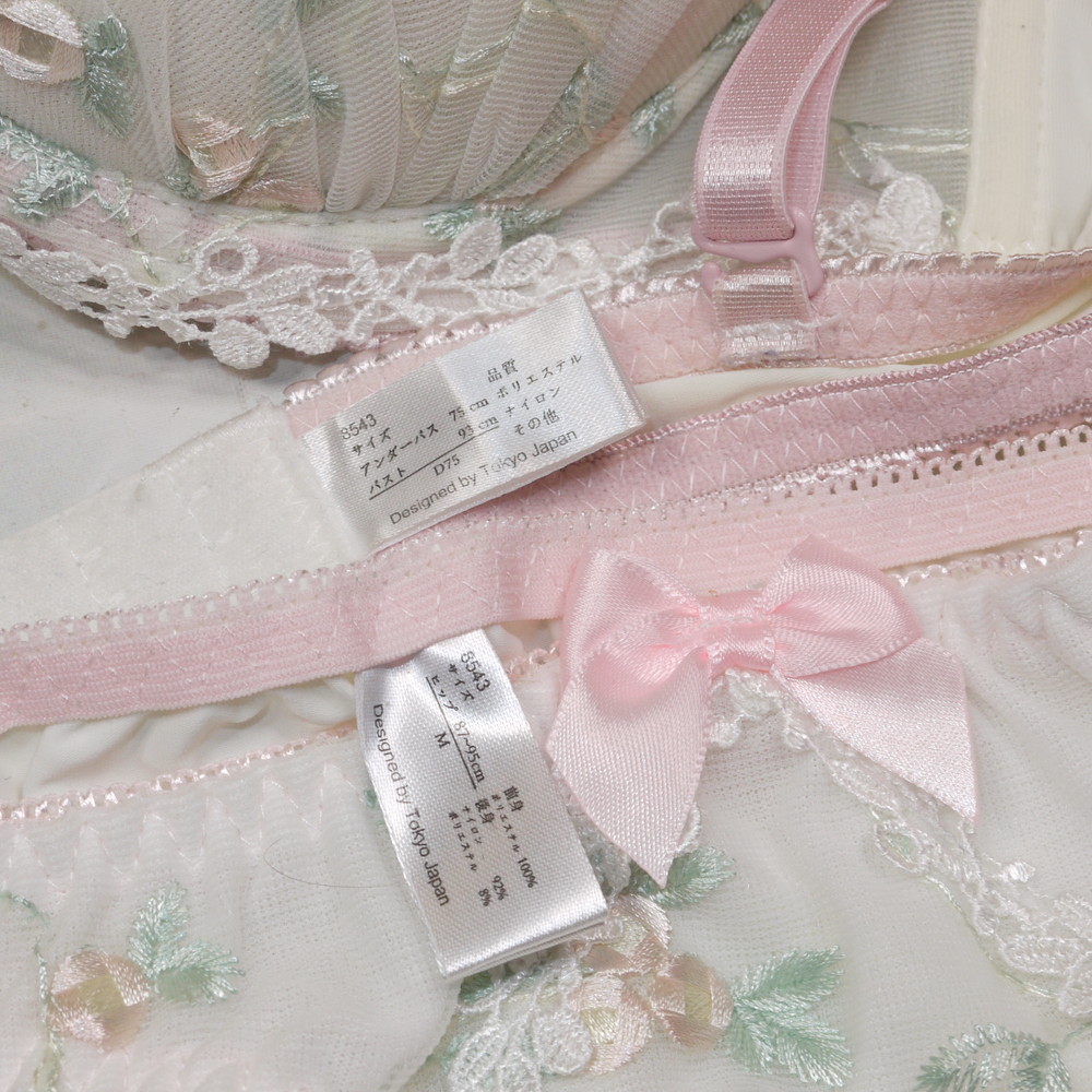 【BCランク】サンロード:D75*93 Mサイズ ★ 清楚白 小花 姫ぴんくリボン JCJK系 厚盛 PBセット