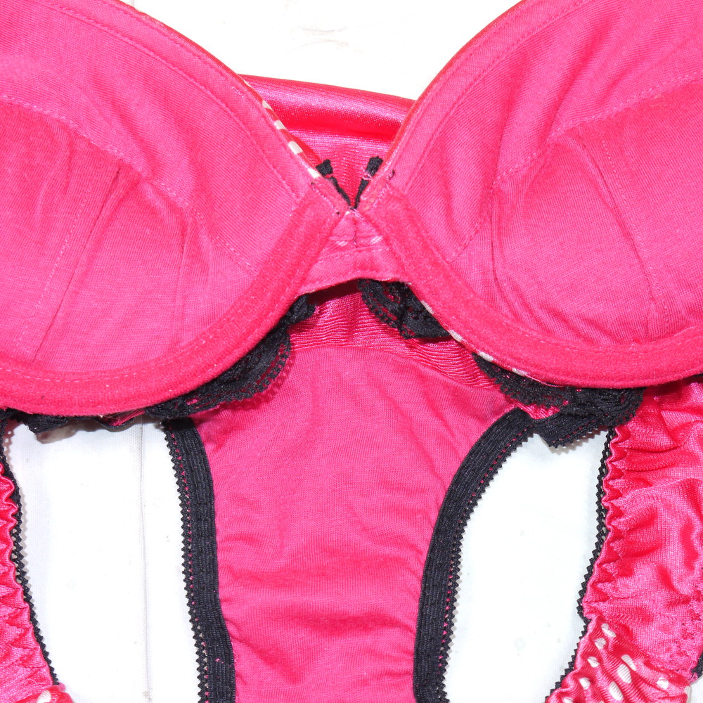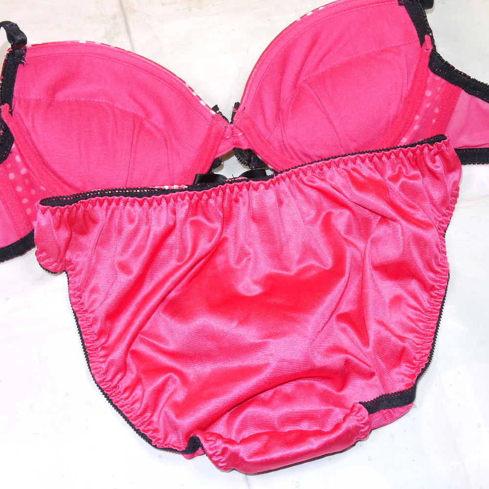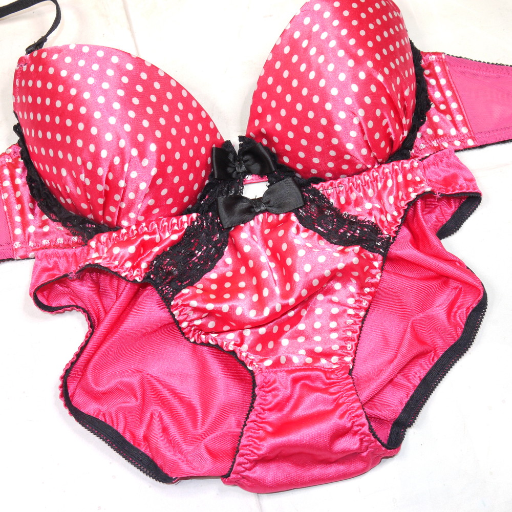 【ABランク/未使用?】関西ファッション:D70*88 Mサイズ ★ 甘サテン&ド派手ピンク 超絶可愛いドット 厚盛 平成ギャル・JCJK系 PBセット