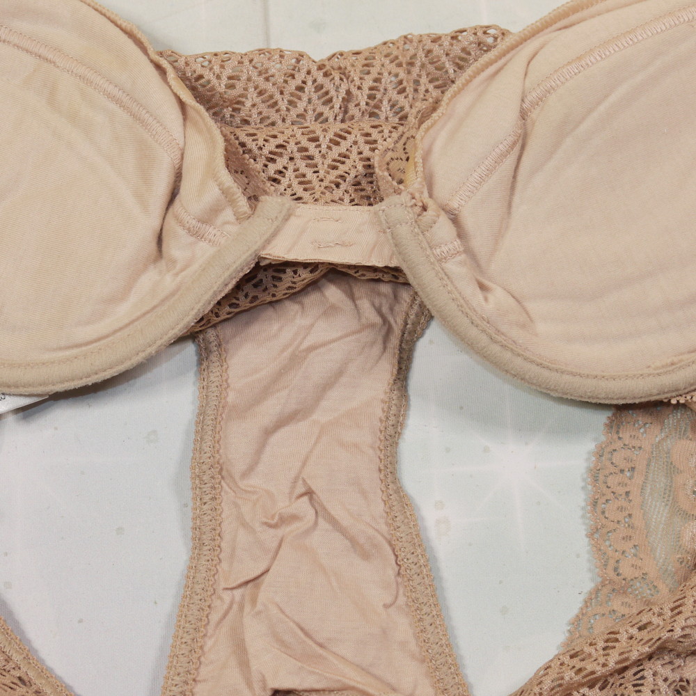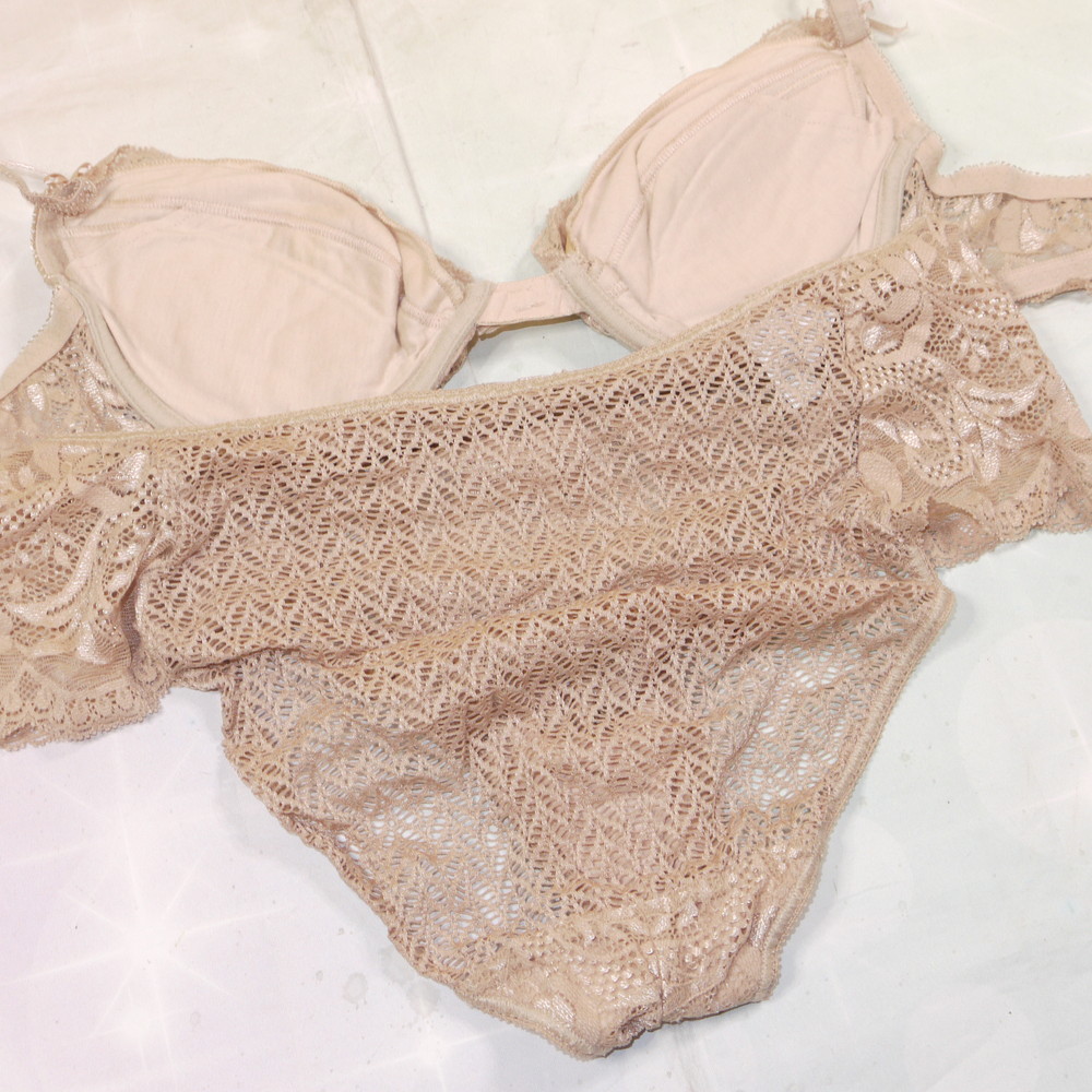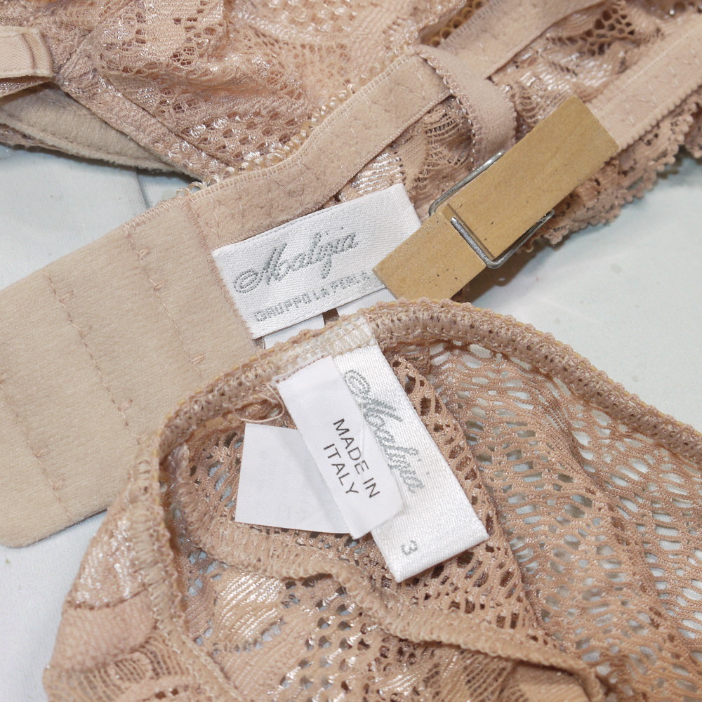 【Bランク/新古美品】maligia:36/L:CDカップ程 L-LL程 ★ 高級感ベージュ×アートレース 高級インポート PBセット