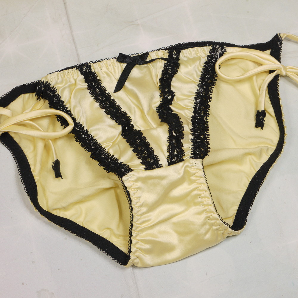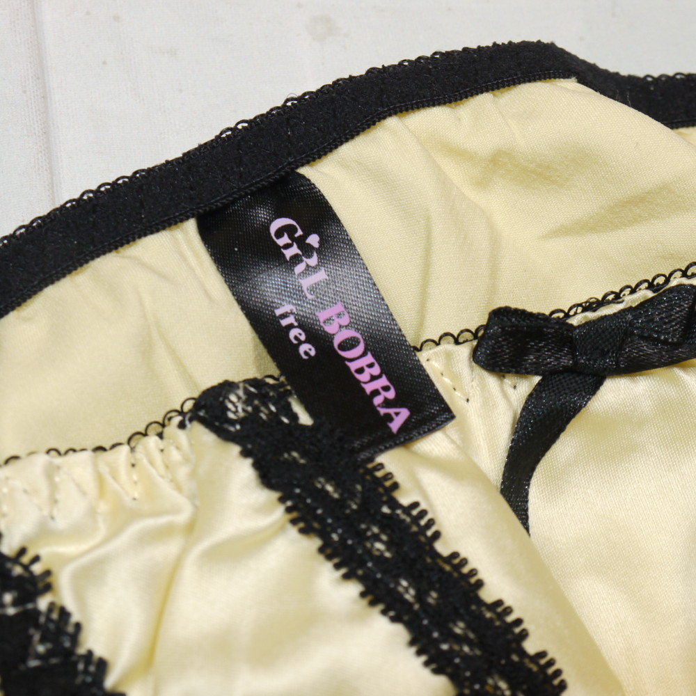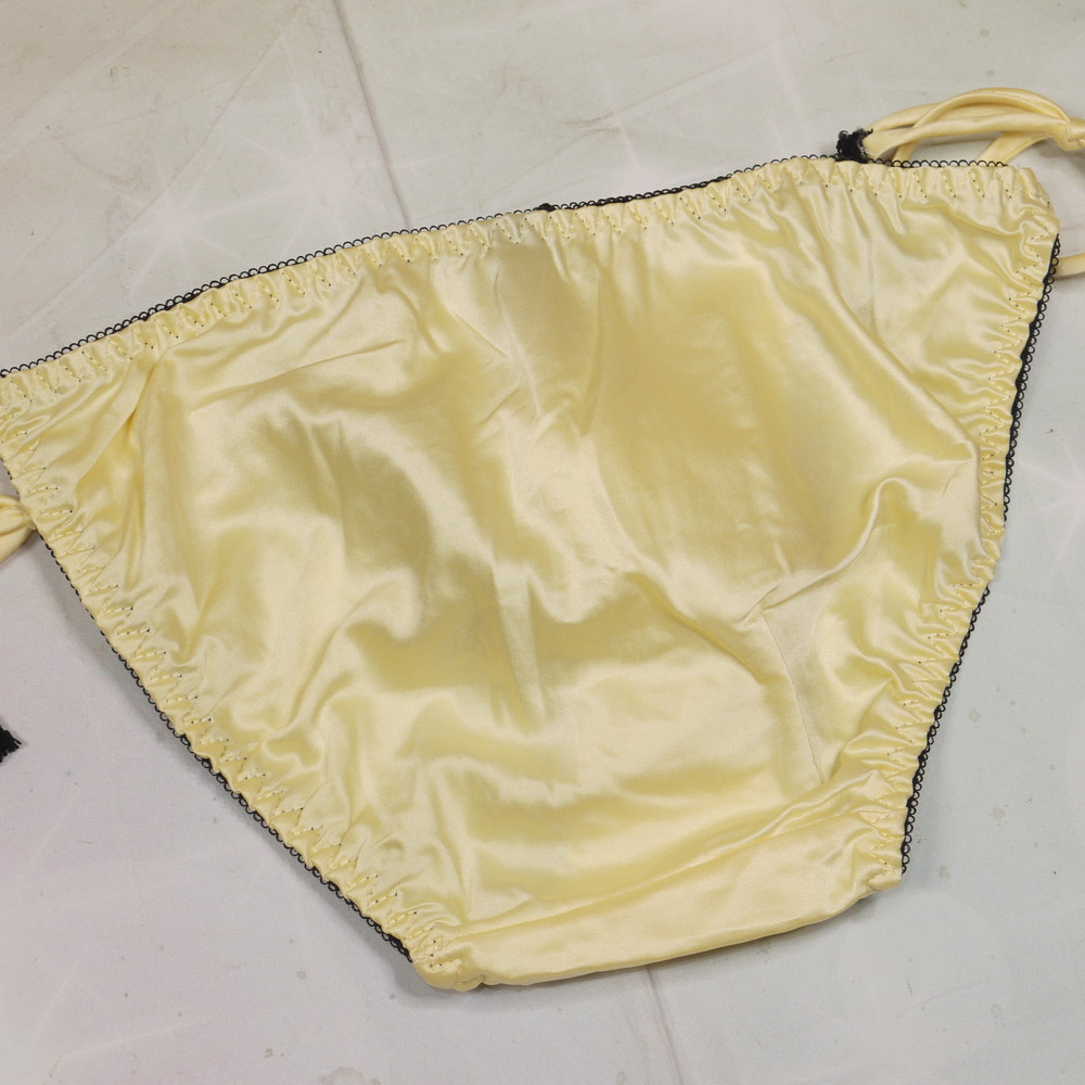 【Aランク/未使用】GiRL BOBRA:F:MLサイズ程 ★ 甘サテン×イエロー レースストライプ 紐パン ギャル系パンティ