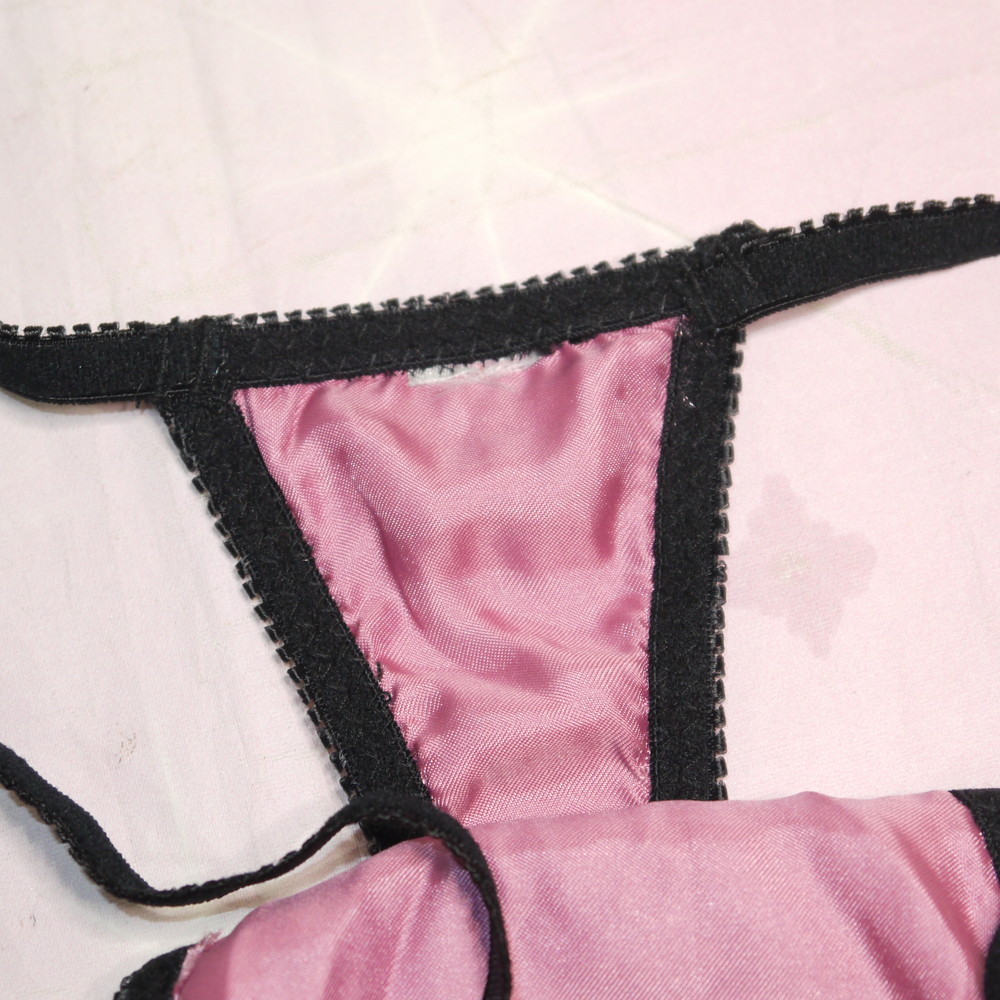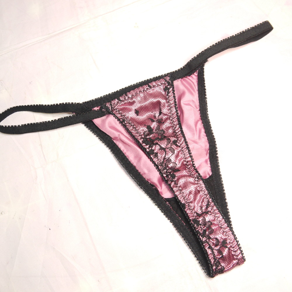 【Bランク/新古美品】:MLサイズ程 ★ 甘サテン ピンク×黒花レース 平成ギャル系 T