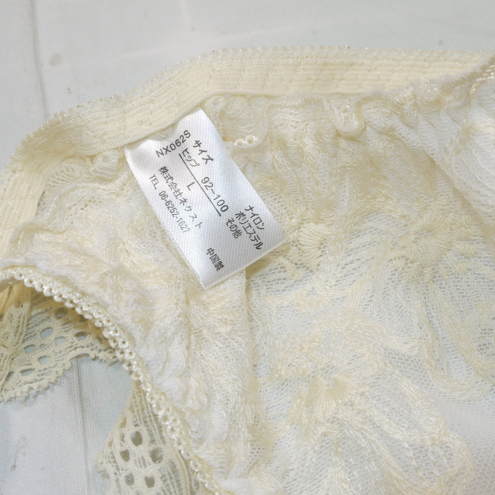 【Bランク/新古美品】ネクスト:Lサイズ ★ 純粋感のクリーム お花刺繍 Tショーツ
