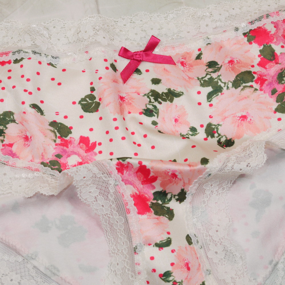 【Aランク/未使用】インポート?:OXL:LL-3L程 ★ オフホワ×ドット ALLお花柄 肉尻メガ フィット系ショーツ