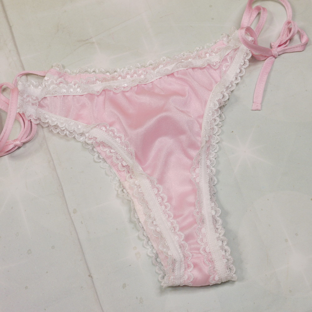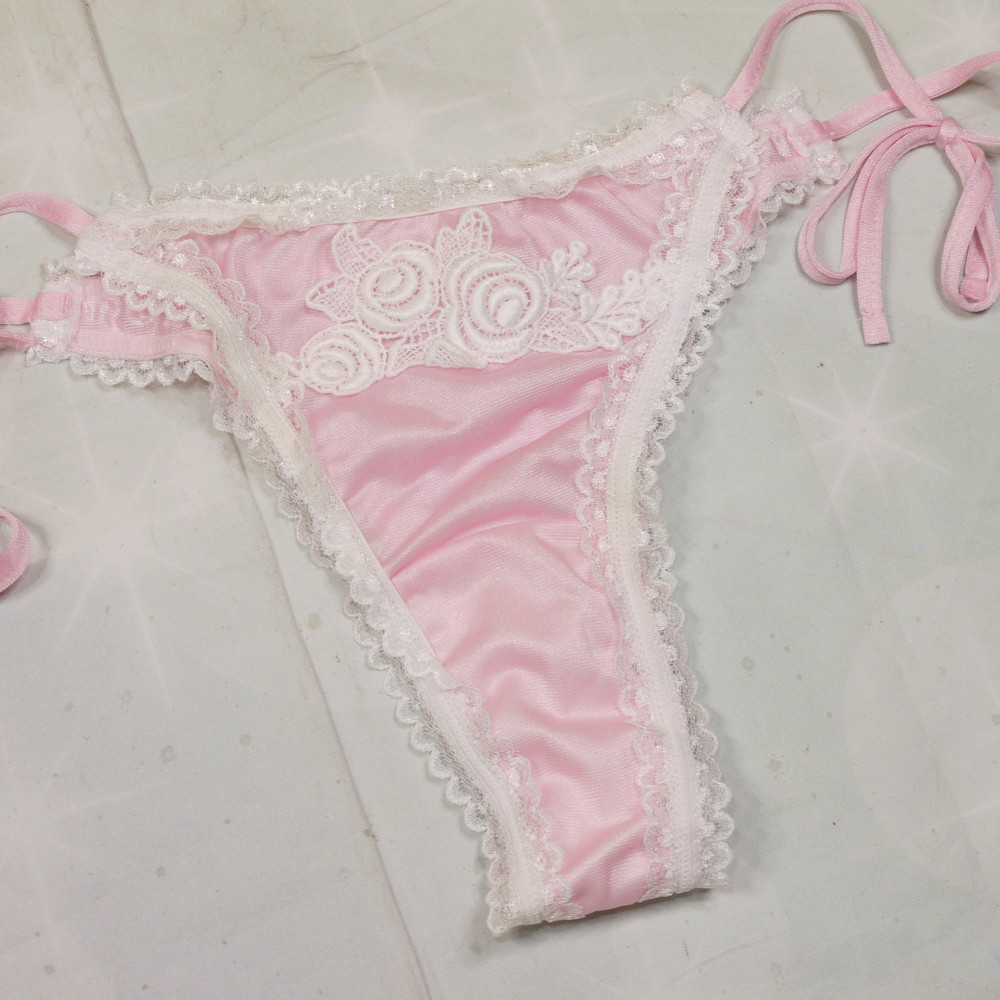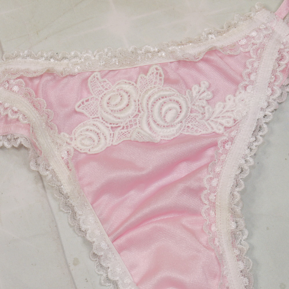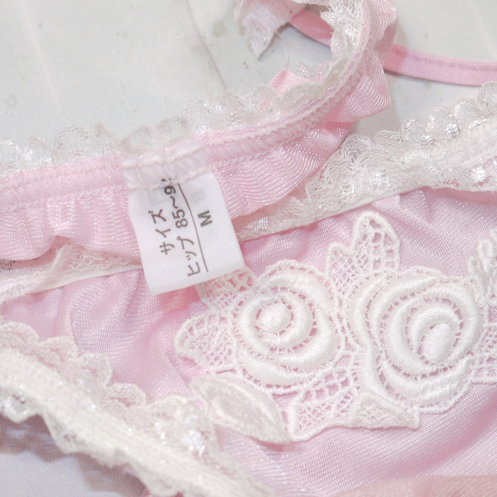 【Bランク/新古美品】:Mサイズ ★ 甘ピンク×縁取りレース レトロで可愛いナイトランジェ 紐パン T