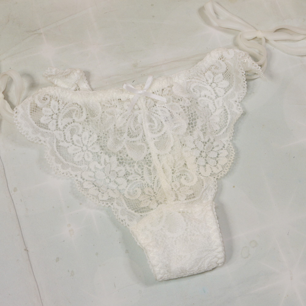【Cランク/43-】サンロード:Mサイズ ★ 純白×透けレース 紐パン Tショーツ