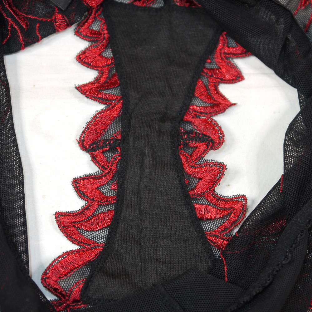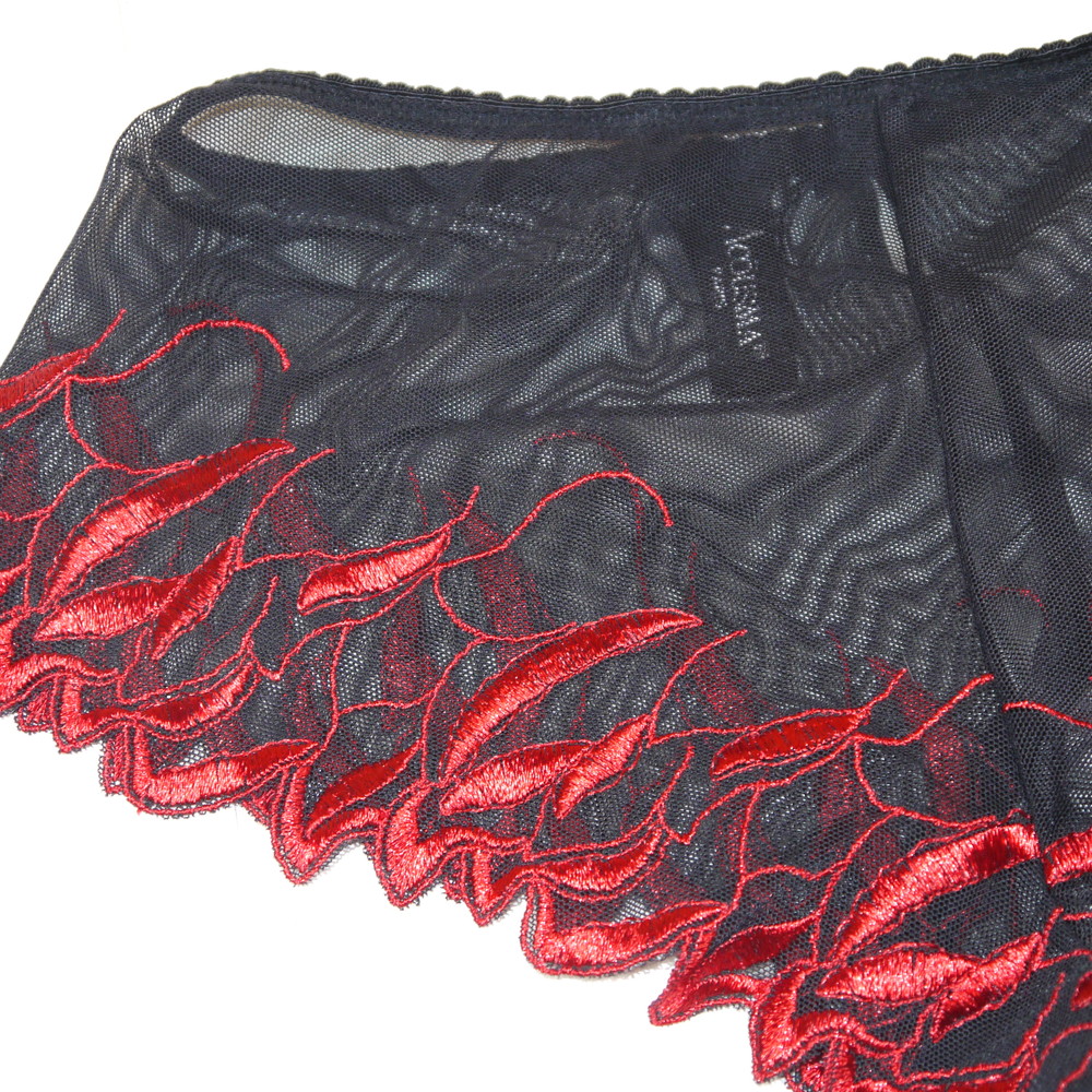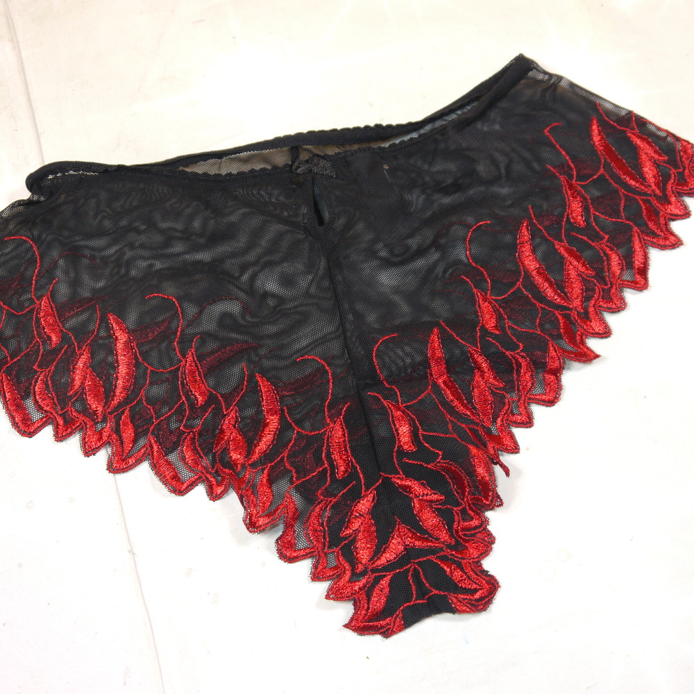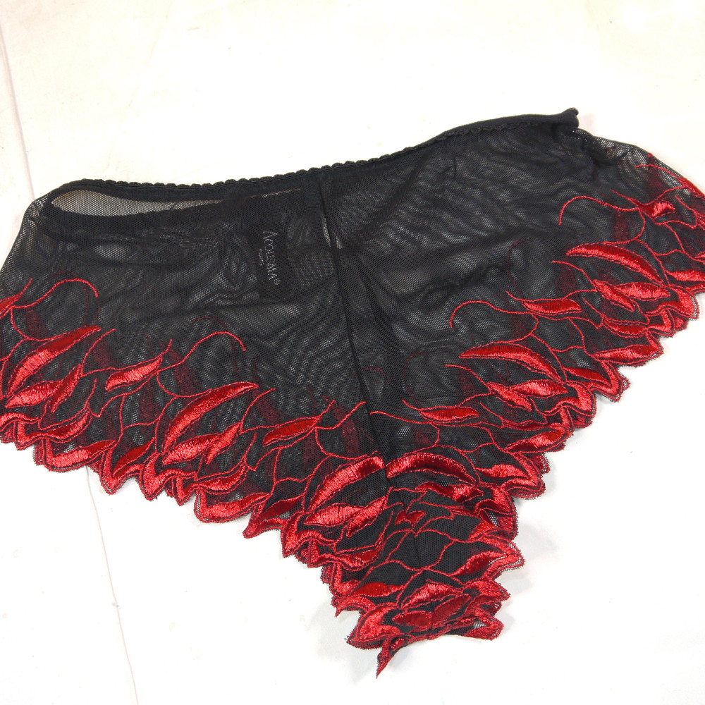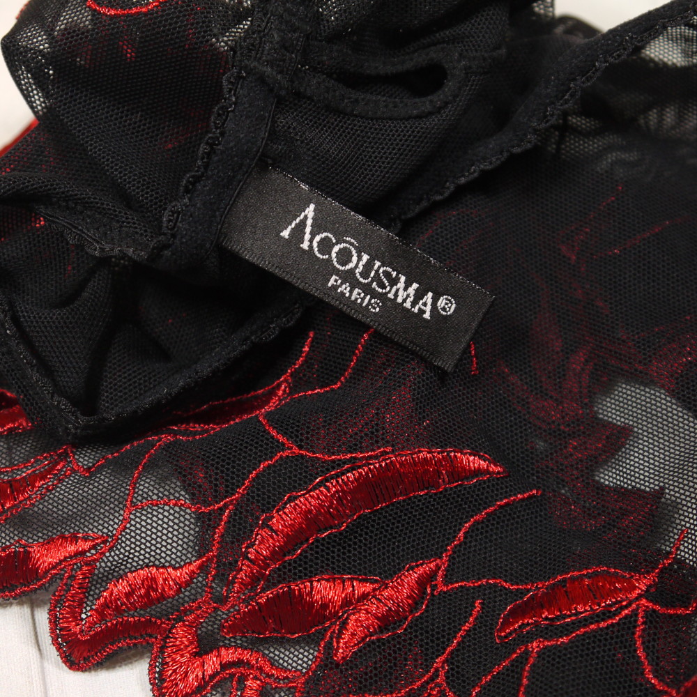 【Bランク/新古美品】ACUSMA:34:MLサイズ程 ★ 妖艶で大人な黒×赤リーフ 透けSEXY フレアパンツ?