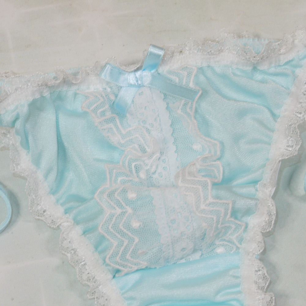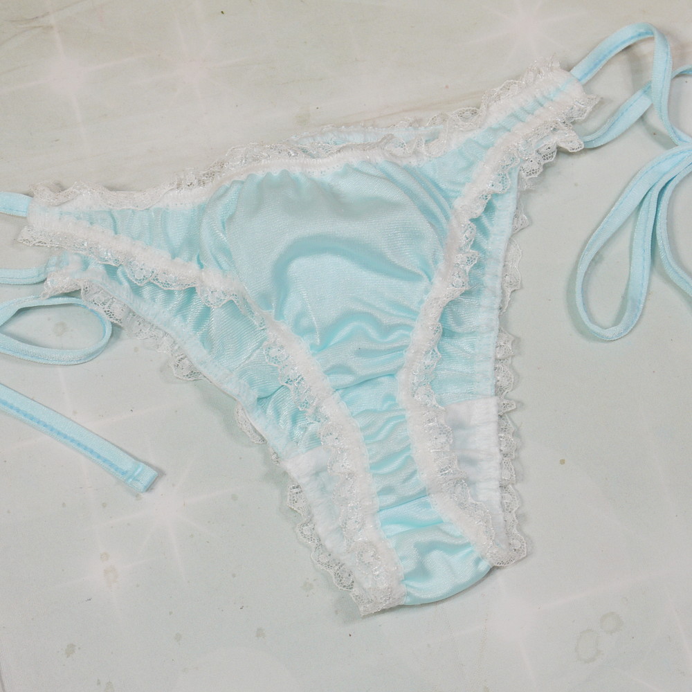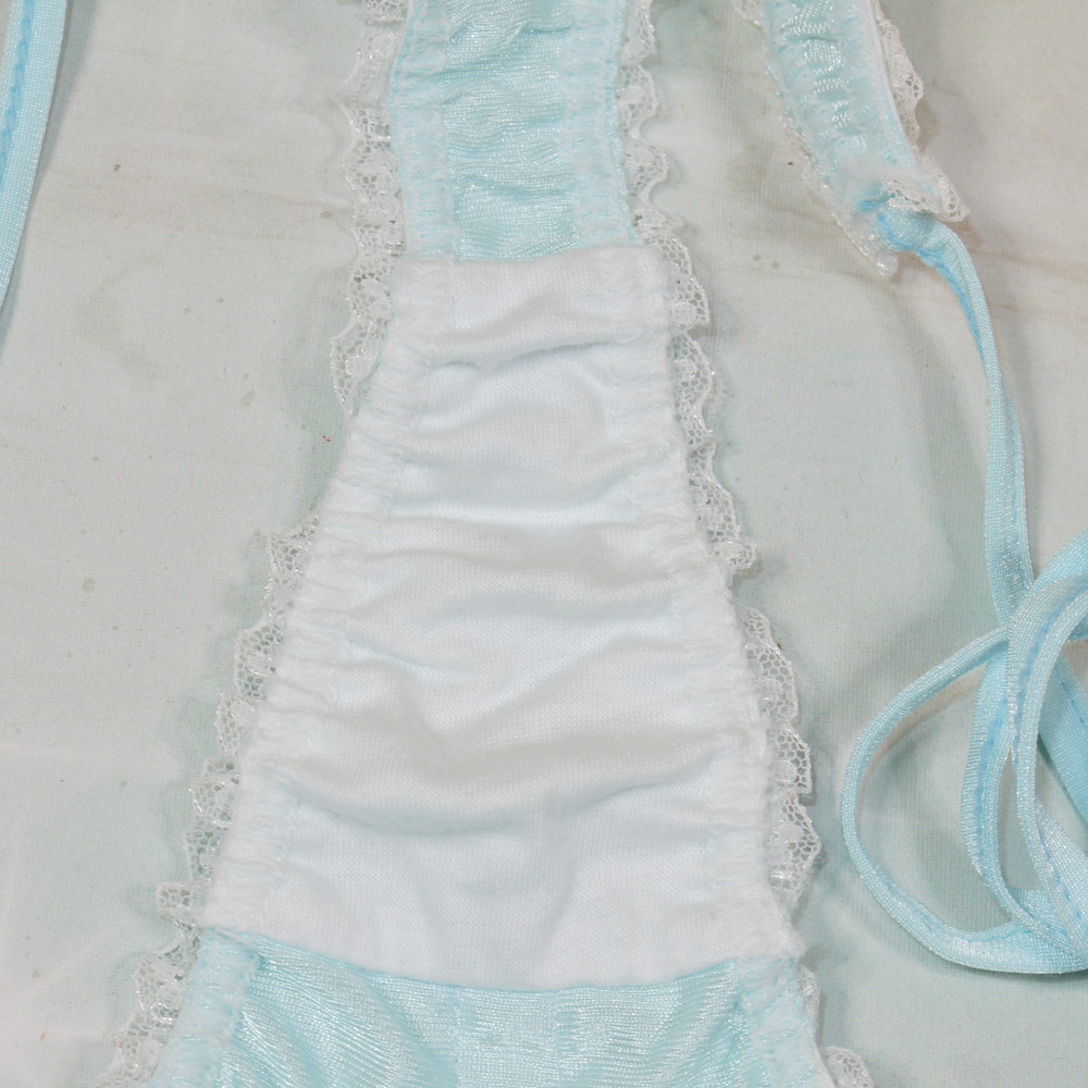 【Bランク/新古美品】サンロード:Mサイズ ★ 甘サテン×激かわフリル タキシード風の可愛い紐パン Tバック