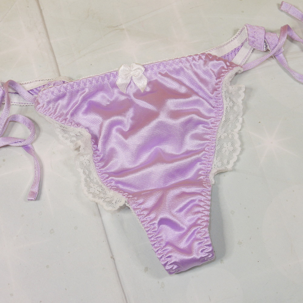 【Bランク/新古美品】フィレスト:Mサイズ ★ 甘サテン×パープル ブリっとキュートなギャル系ランジェ 紐パン Tバック