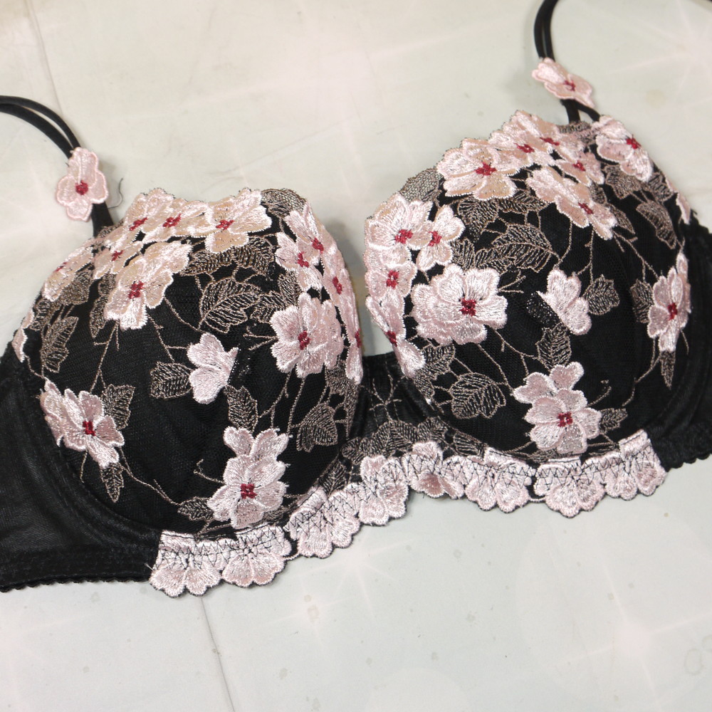 【ABランク/未使用?】ワコール:D75*93 ★ Lge!高級感溢れる黒 桜刺繍 むっちり75 ブラ